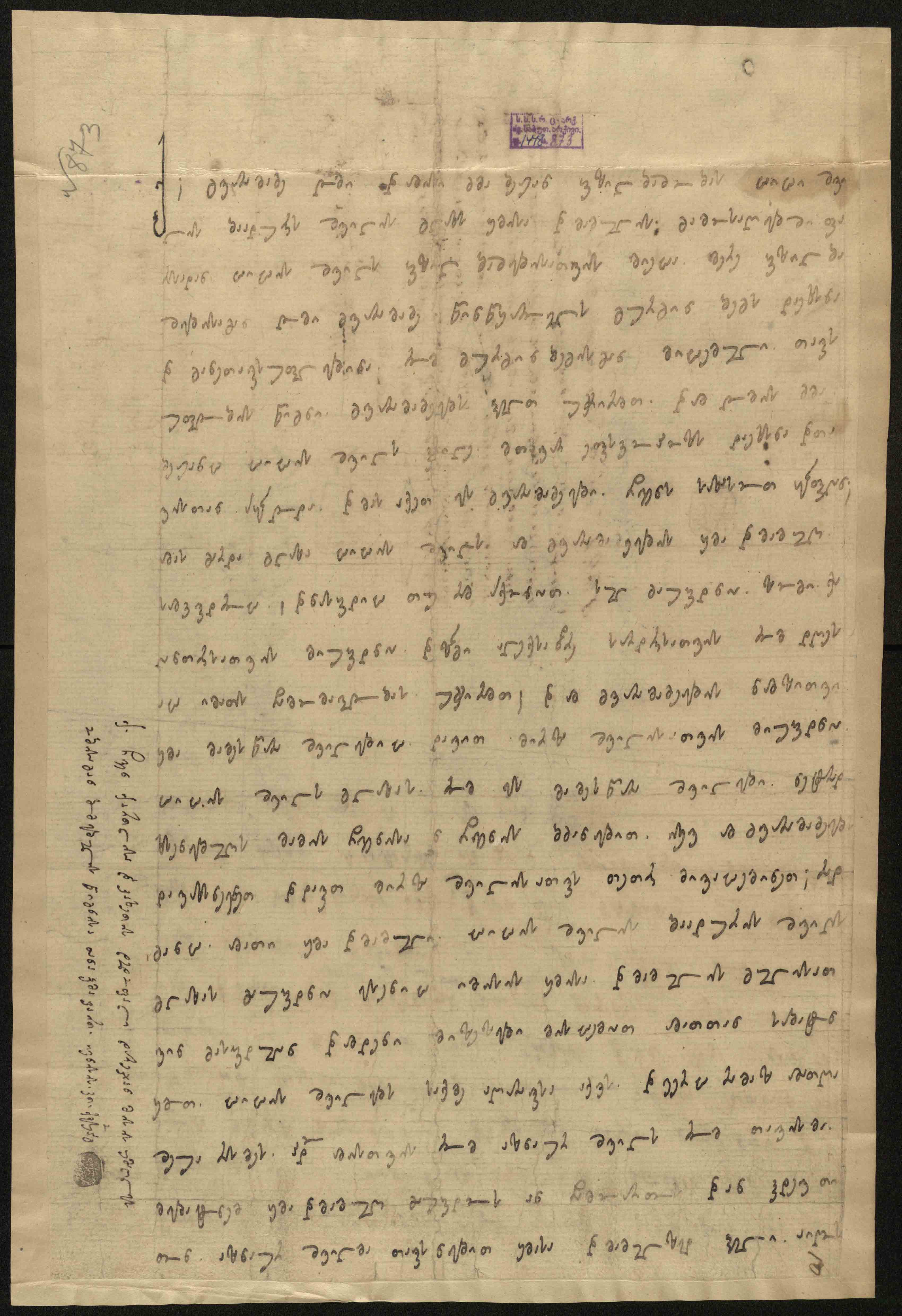 ჭვირნიშნიანი ქაღალდი ყვითელი, დაწერილი ყავისფერი მელნით