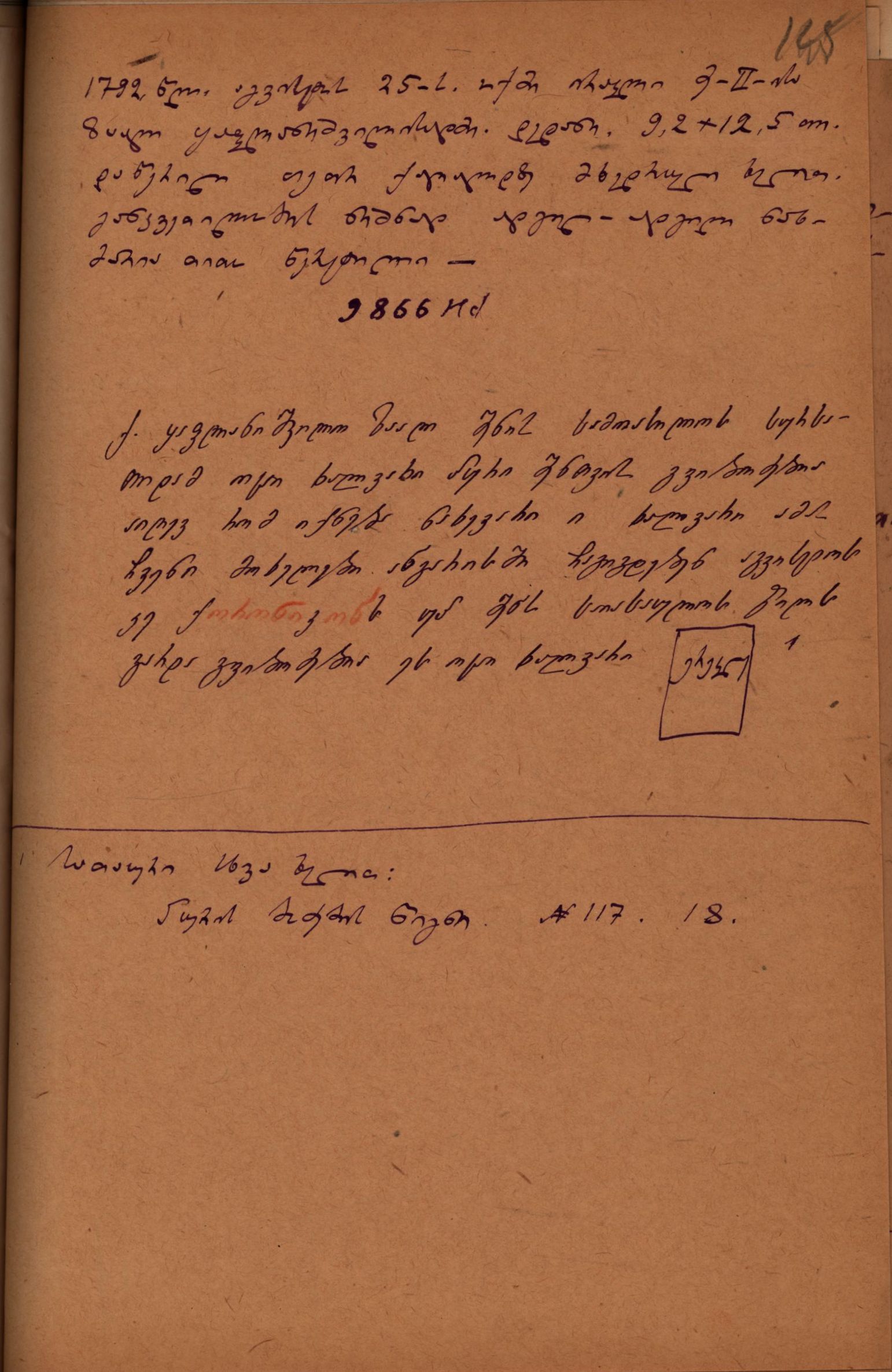 1.სათაური სხვა ხელით: ,,პურის ბოძების წიგნი; N117; 18".