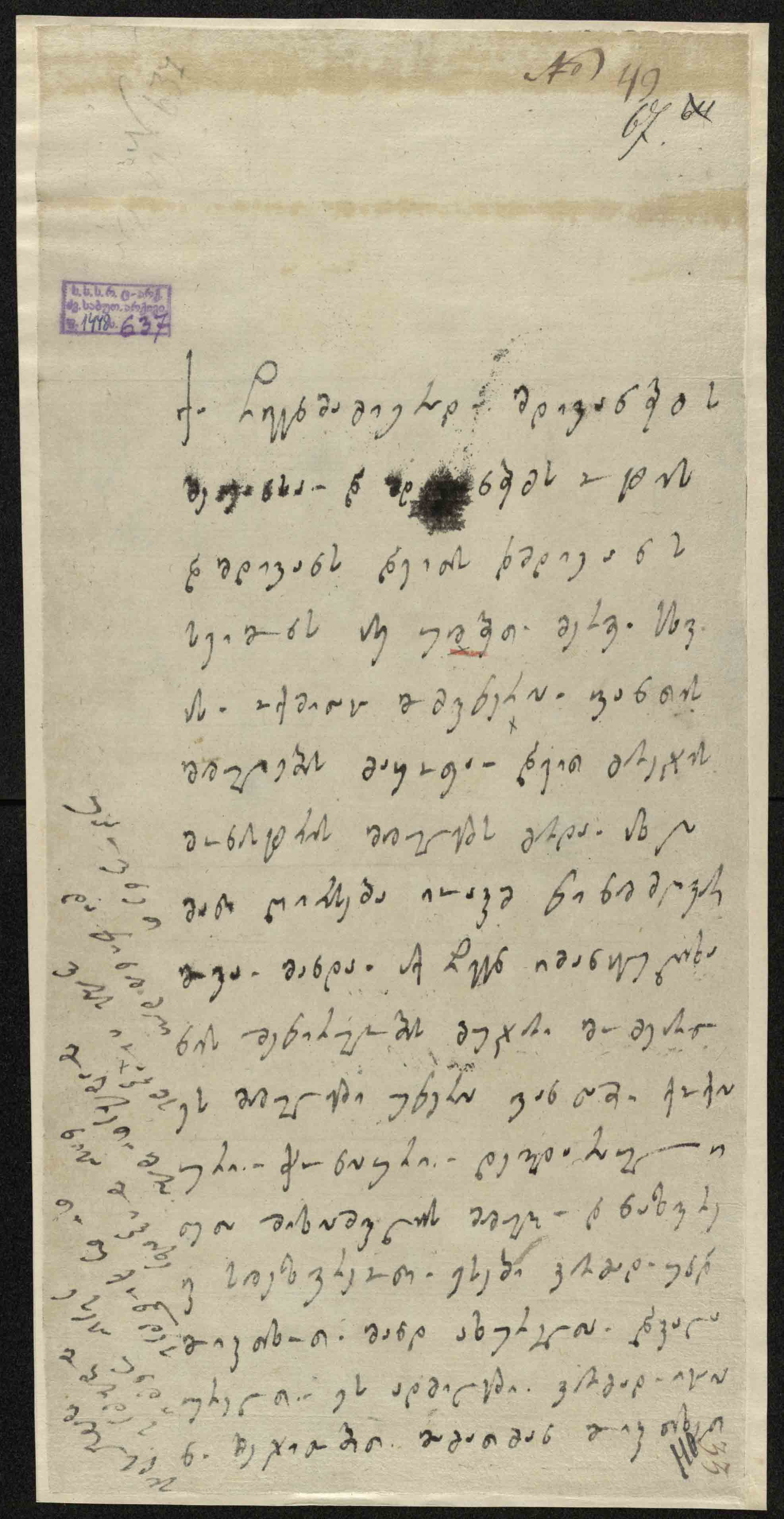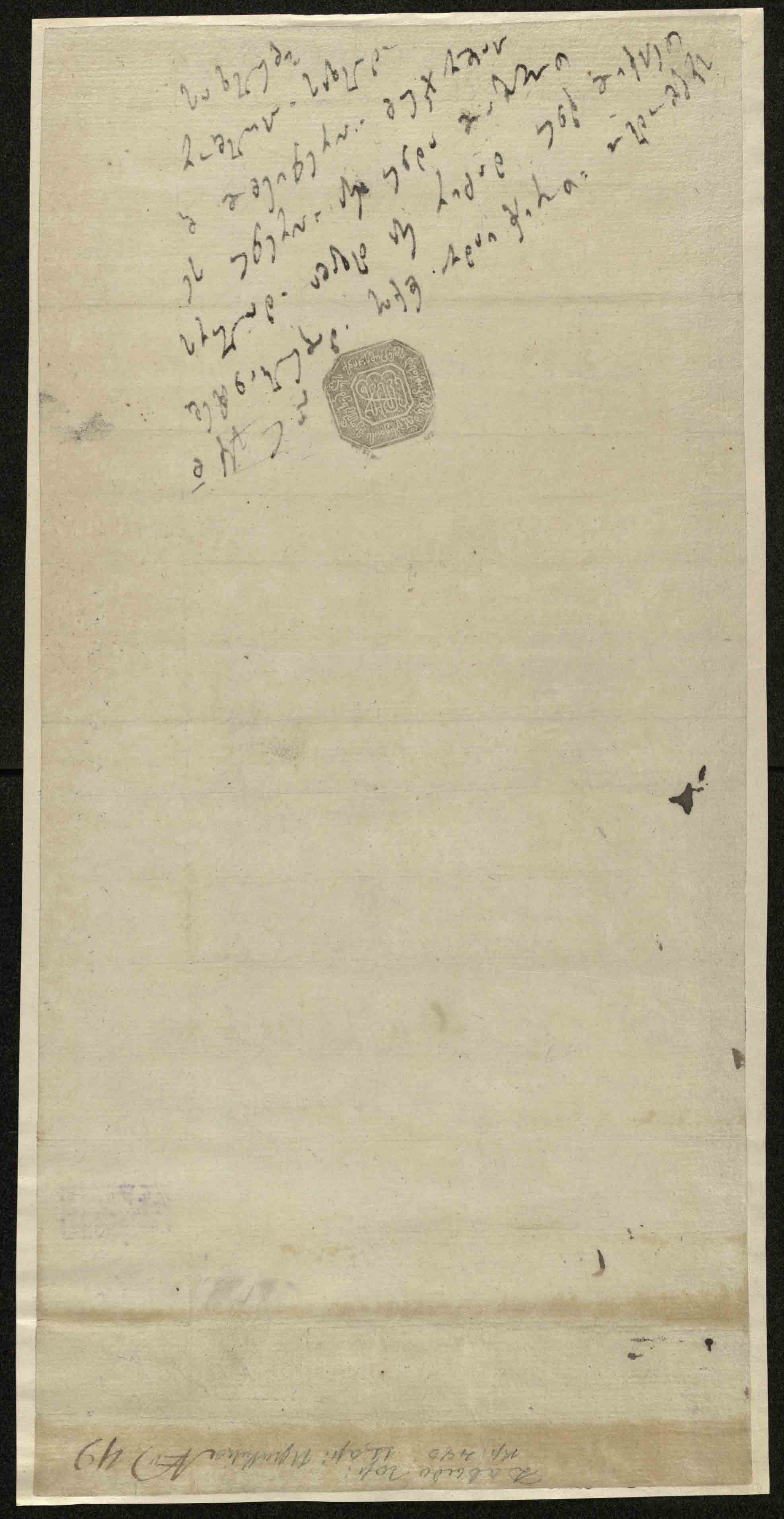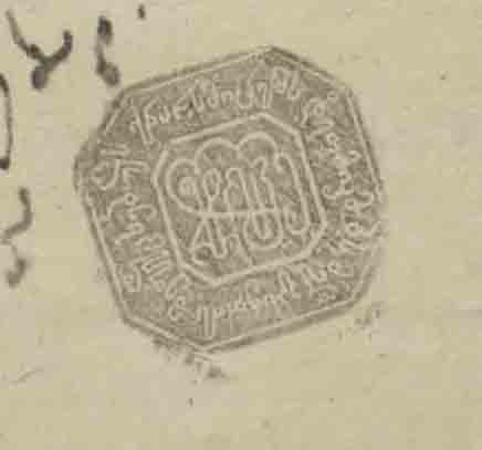ჭვირნიშნიანი ქაღალდი ნაცრისფერი, შესრულებული შავი მელნით