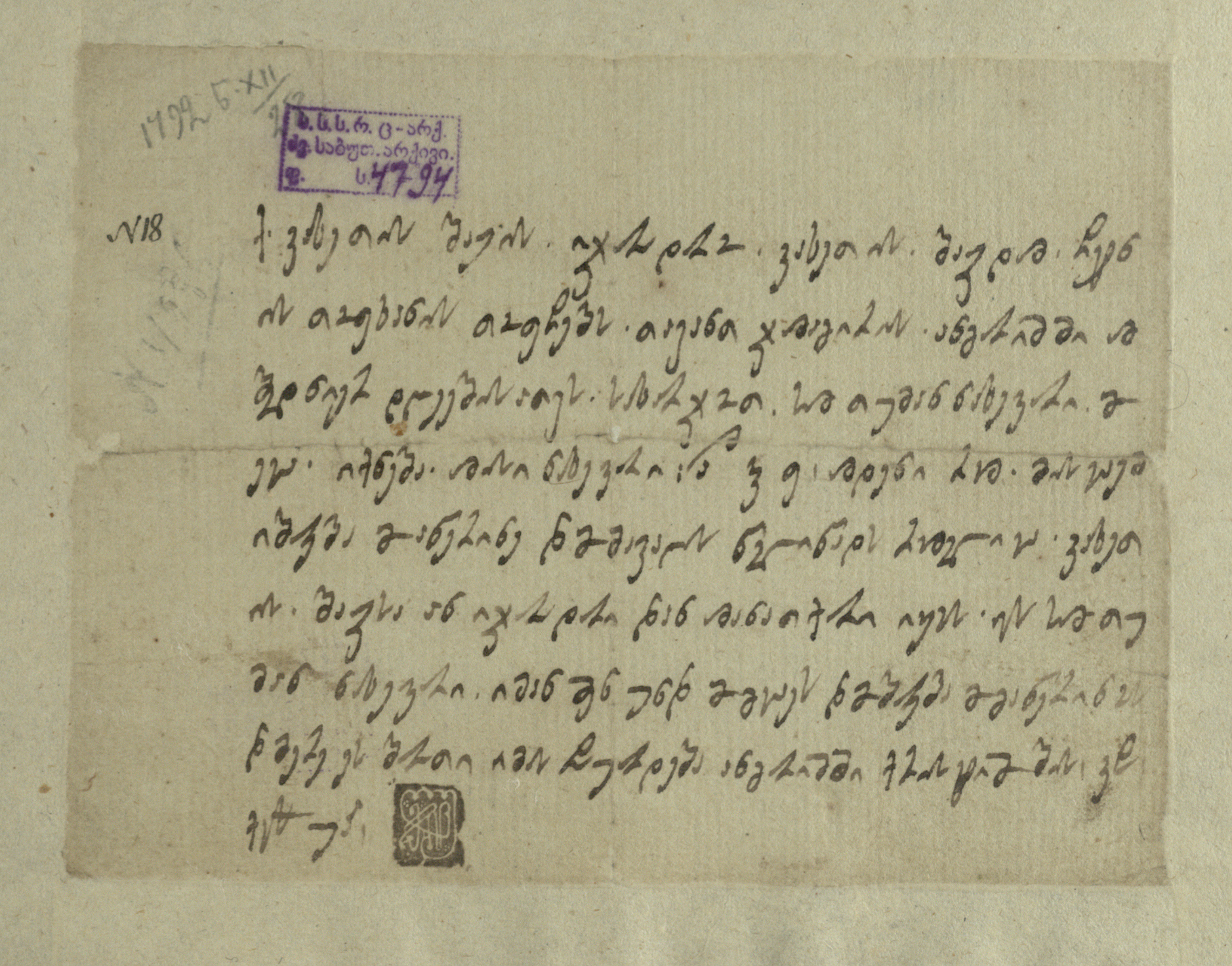 ქაღალდი ნაცრისფერი, შესრულებული ყავისფერი მელნით.