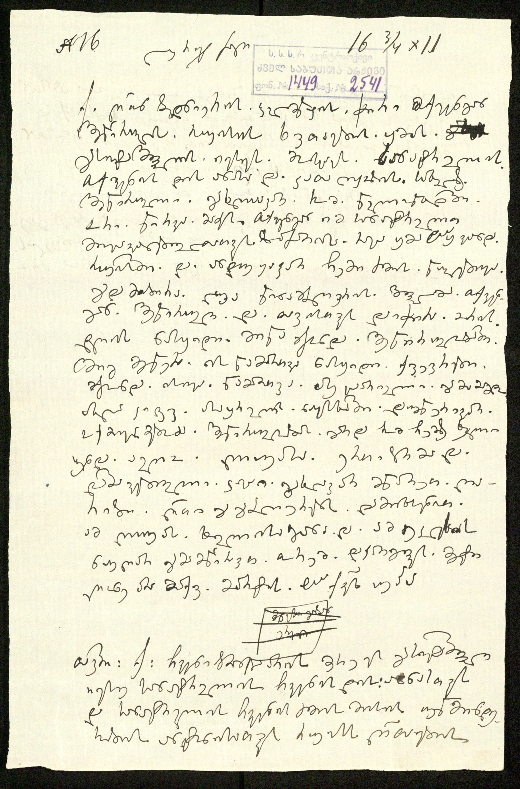 2. სარგის კაკაბაძეს მითითებული აქვს საბუთის აღწერილობა - ზომა: ,,ლურ. ქაღ. 163/4 X 11 და ძველი საარქივო-სააღრიცხვო ნომერი: N16".