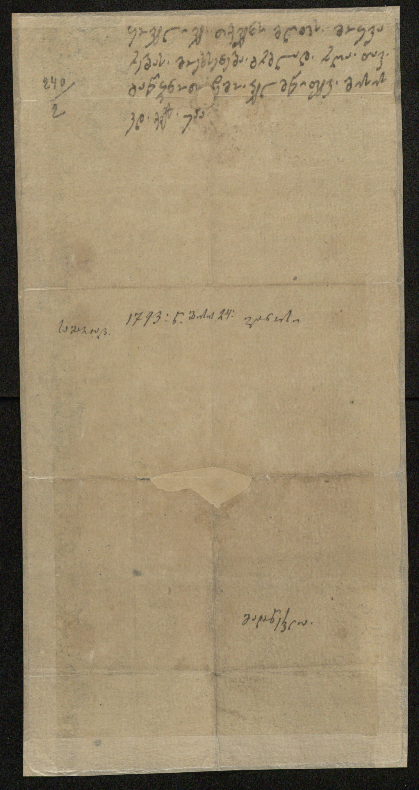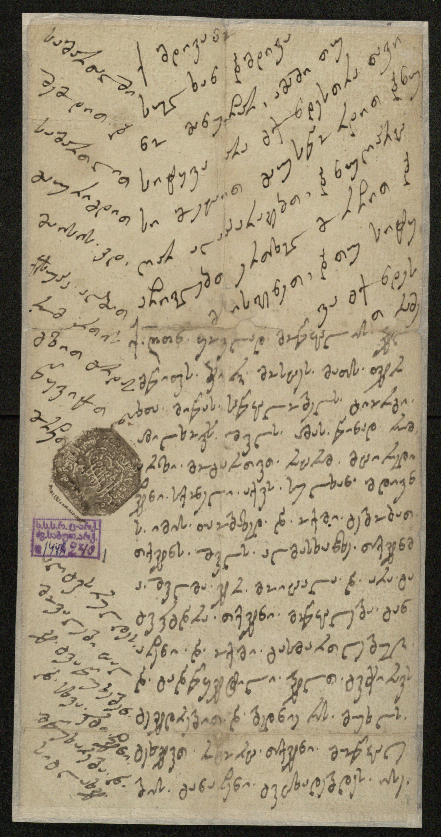 ჭვირნიშნიანი ქაღალდი ნაცრისფერი, დაწერილი ყავისფერი მელნით