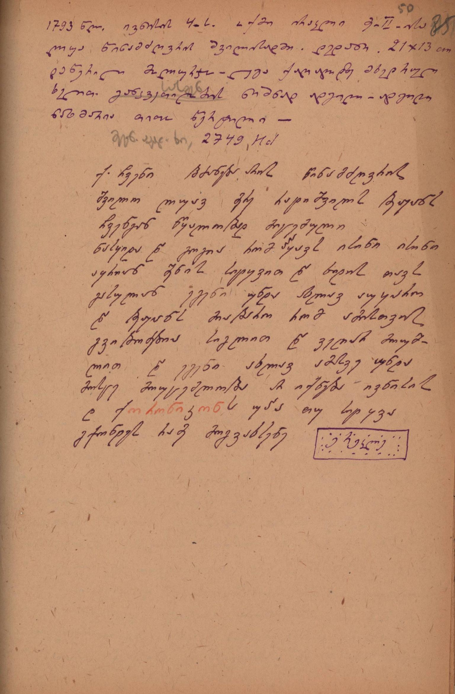2. დედნის აღწერა გიორგი ბოჭორიძის მიერ: დედანი, 21x13 cm., დაწერილი მოლურჯო-ლეგა ქაღალდზე მხედრული ხელით, განკვეთილობის ნიშნად ადგილ-ადგილ ნახმარია თითო წერტილი".