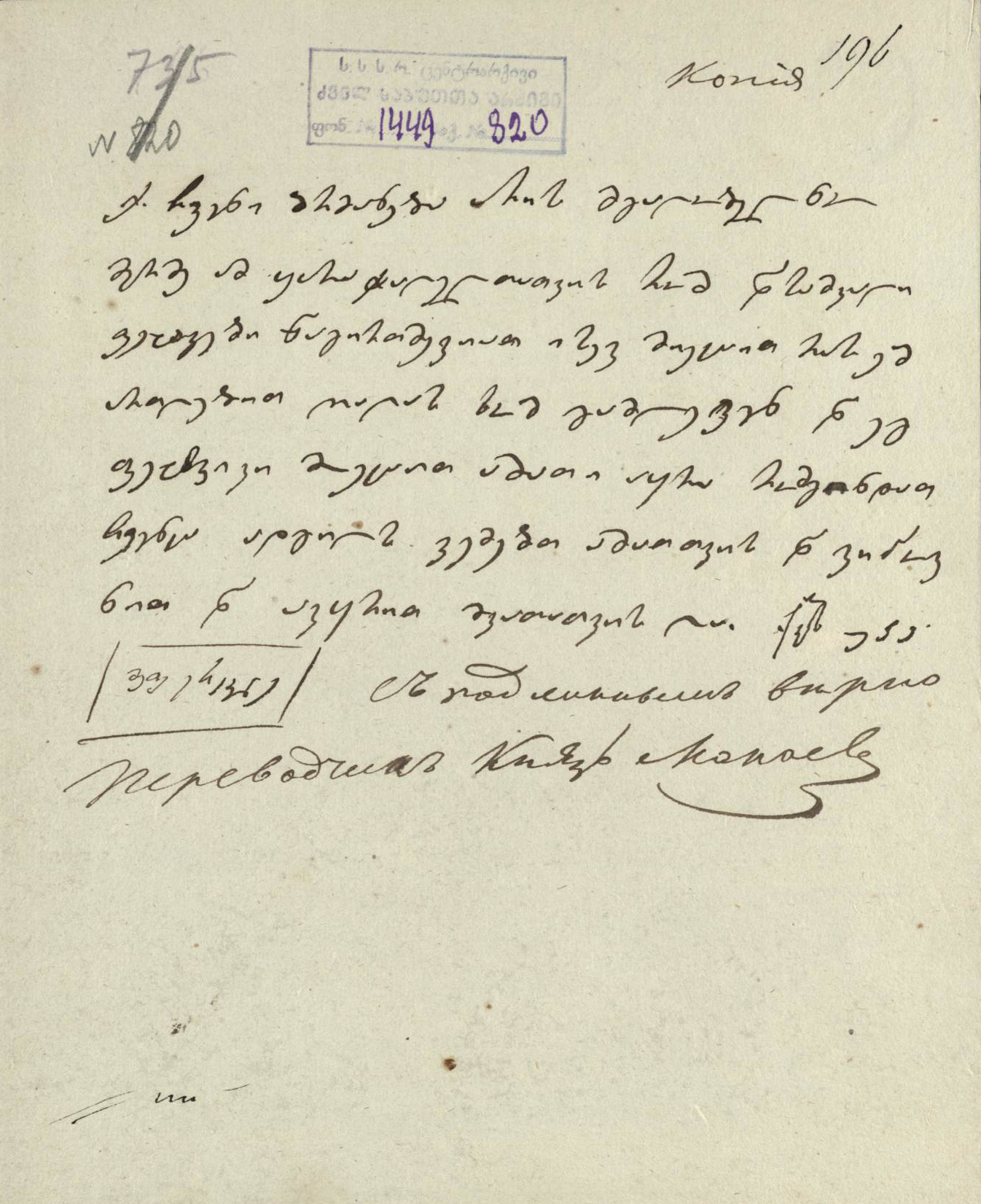 1. საბუთი გადაწერილია XIX ს-ის I მეოთხედში.