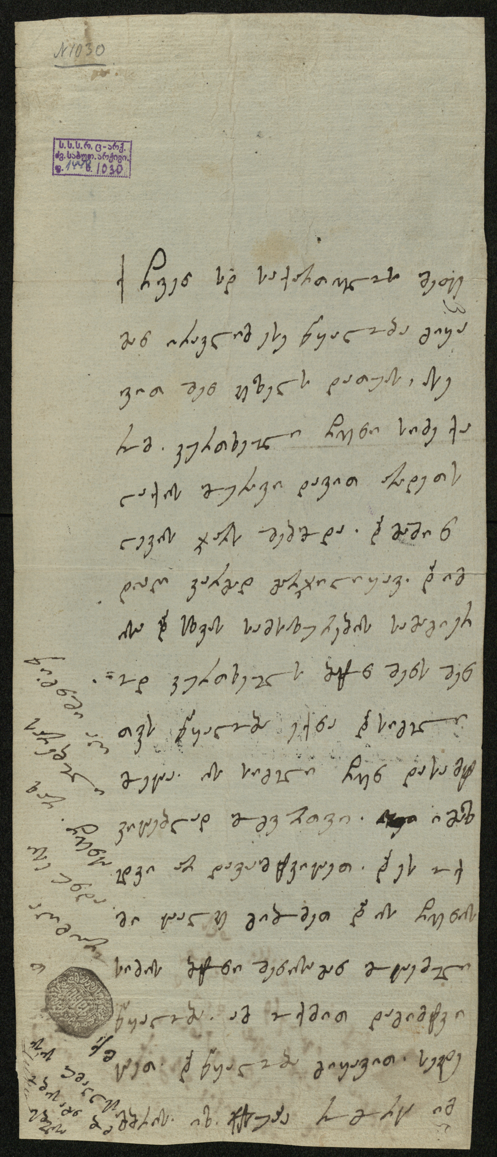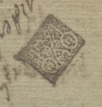 ჭვირნიშნიანი ქაღალდი ნაცრისფერი, შესრულებული შავი მელნით