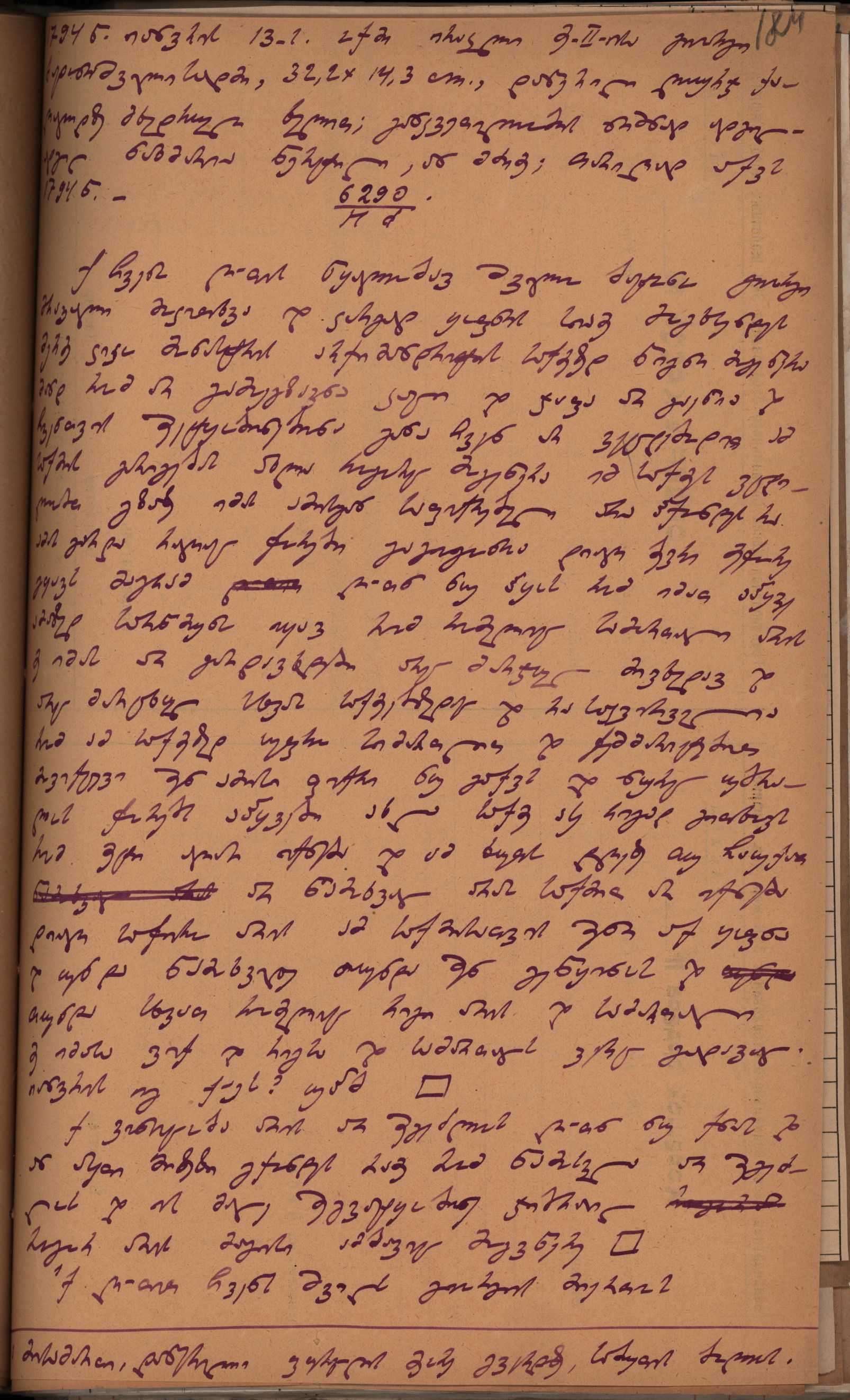 ქაღალდი ღია ყავისფერი, დაწერილი ლურჯი მელნით.