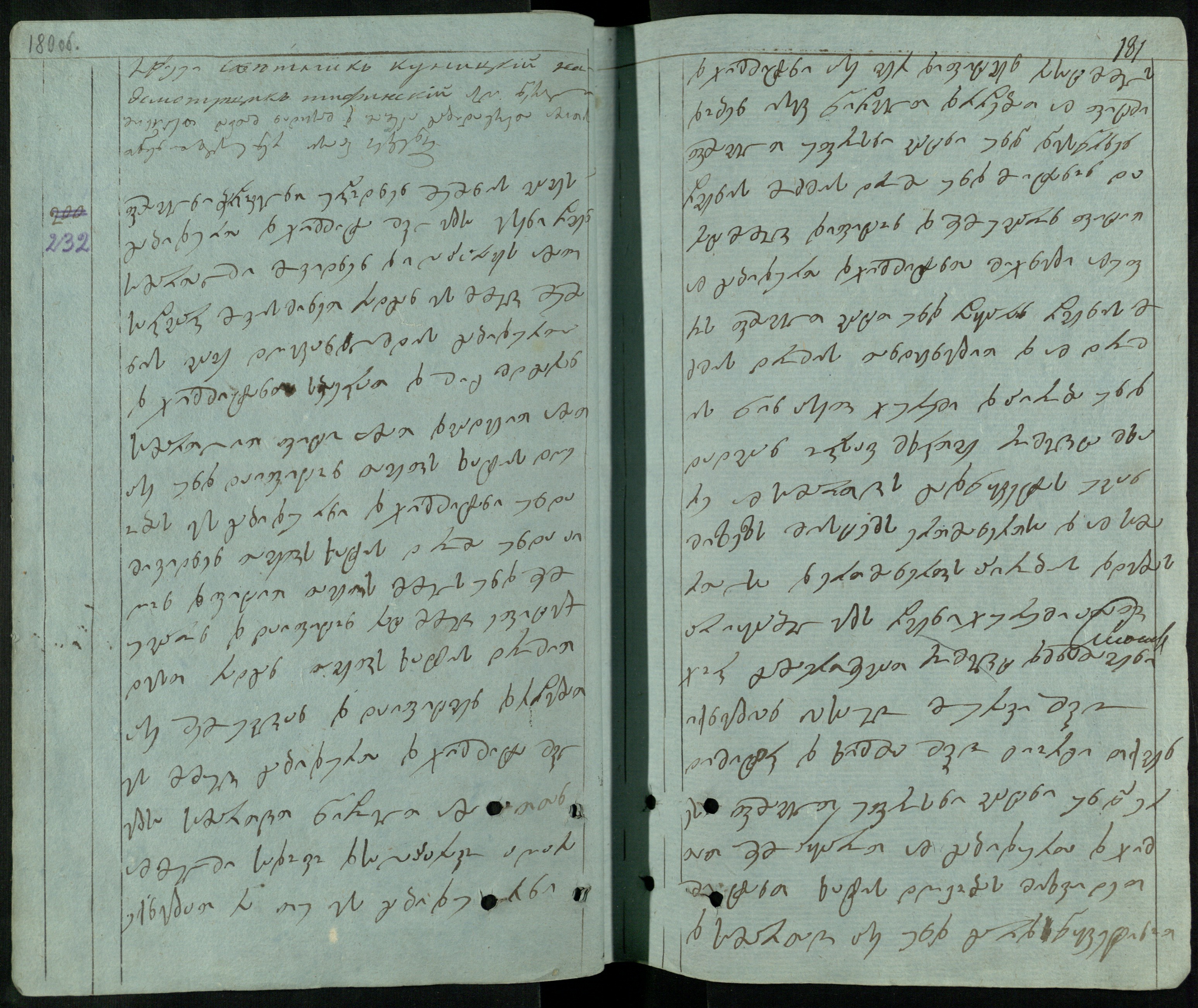 ქაღალდი ცისფერი, დაწერილი შავი მელნით.