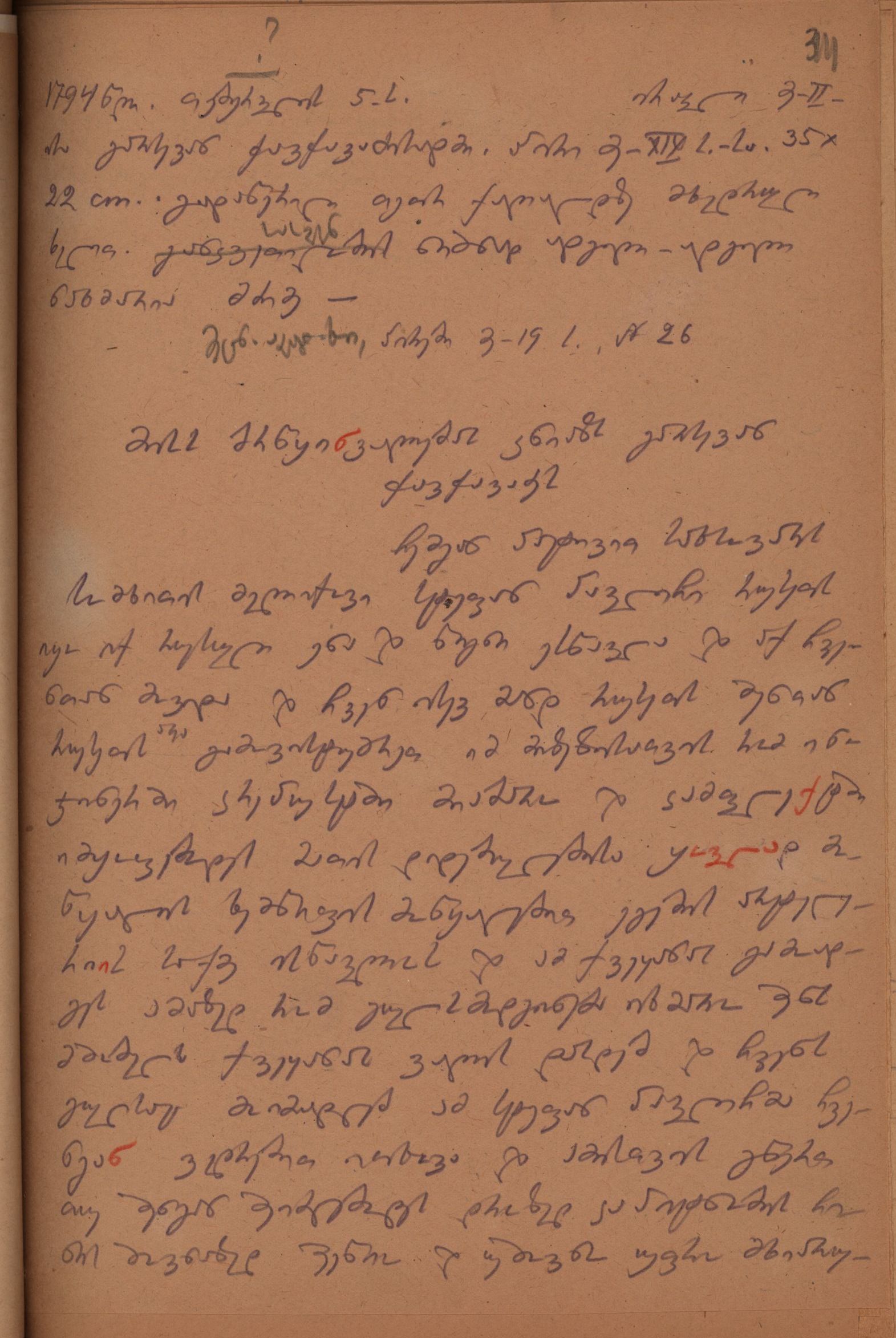 ქაღალდი ყვითელი, დაწერილი შავი ფანქრით; რამდენიმე სიტყვა წითელი ფანქრით