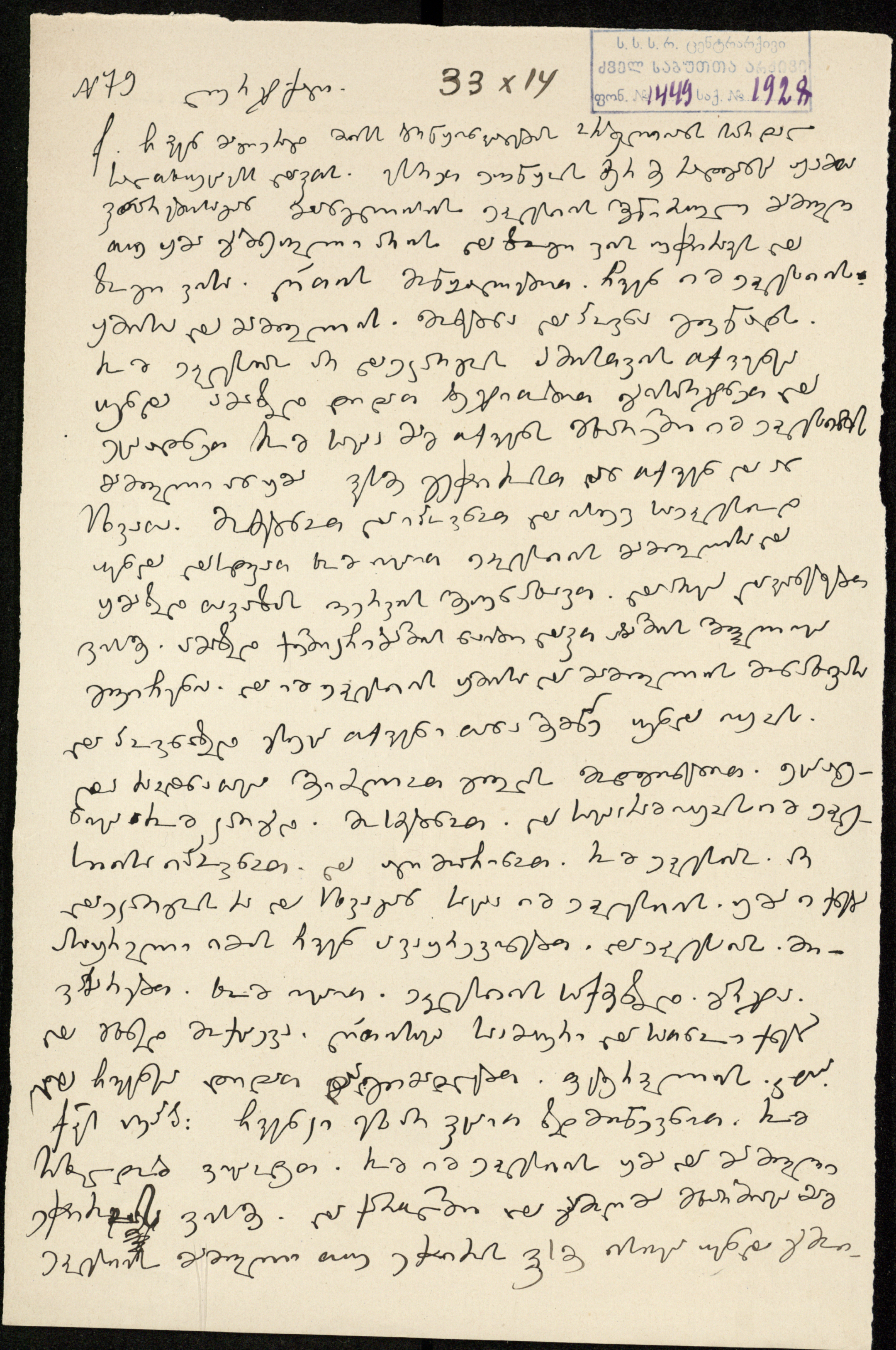 2, სარგისკაკაბაძეს მითითებული აქვს საბუთის აღწერილობა, ზომა: ,,ლურჯ. ქაღ.; 33X 14 და ძველი საარქივო-სააღრიცხვო ნომერი: N79".