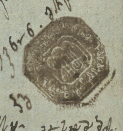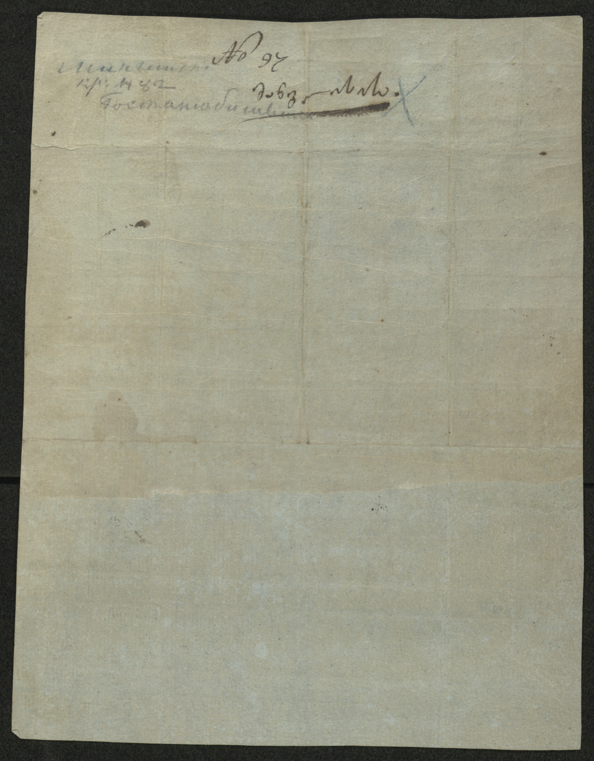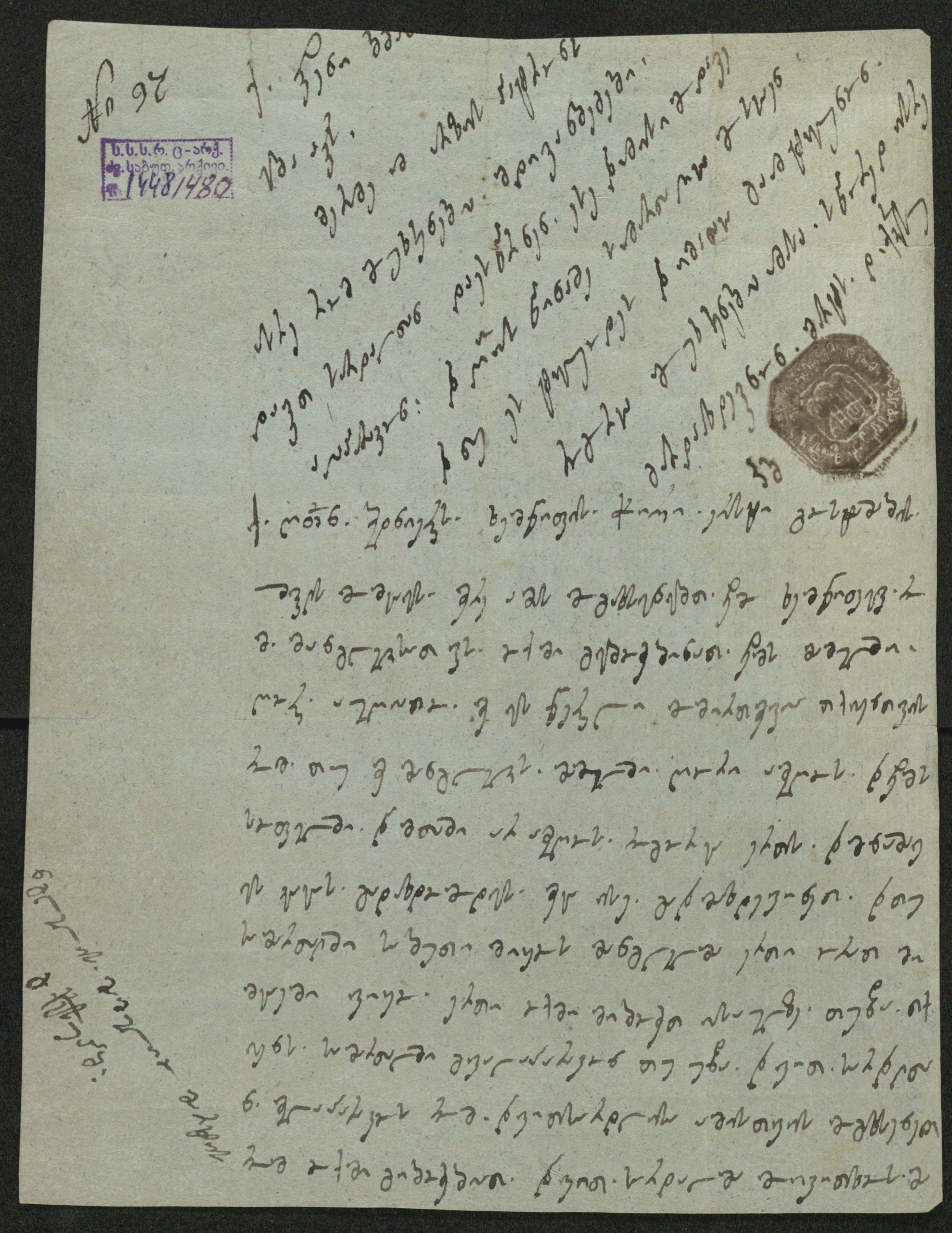 ჭვირნიშნიანი ქაღალდი ცისფერი, შესრულებული შავი მელნით