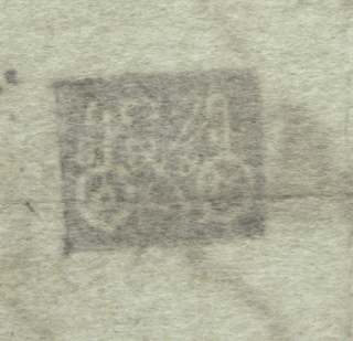 ჭვირნიშნიანი ქაღალდი მომწვანო, შესრულებული შავი მელნით