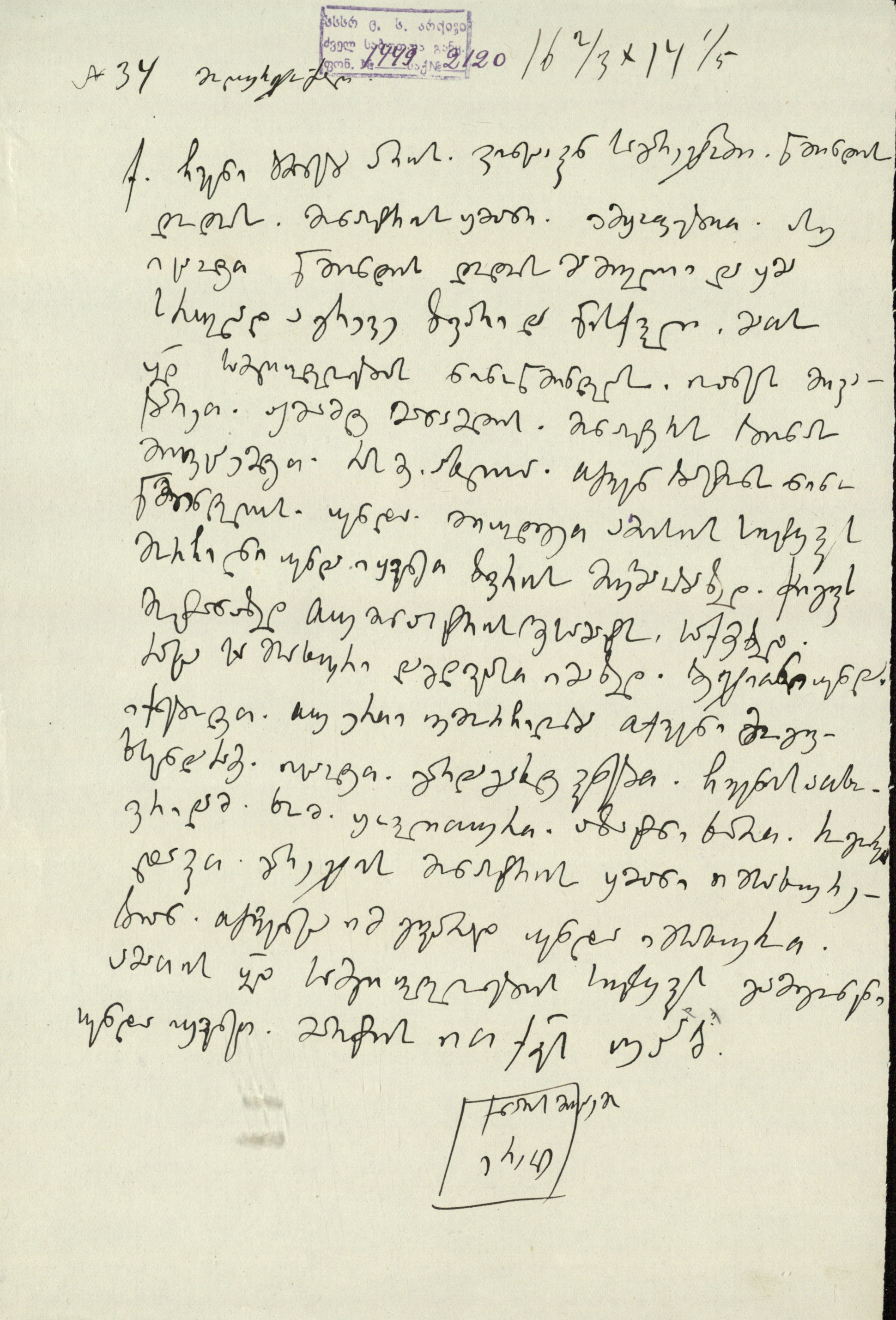 2. სარგის კაკაბაძეს მითითებული აქვს საბუთის ფერი, ზომა: ,,ლურჯ. ქაღ.; 16 2/3X 141/5 და ძველი საარქივო-სააღრიცხვო ნომერი: N34.