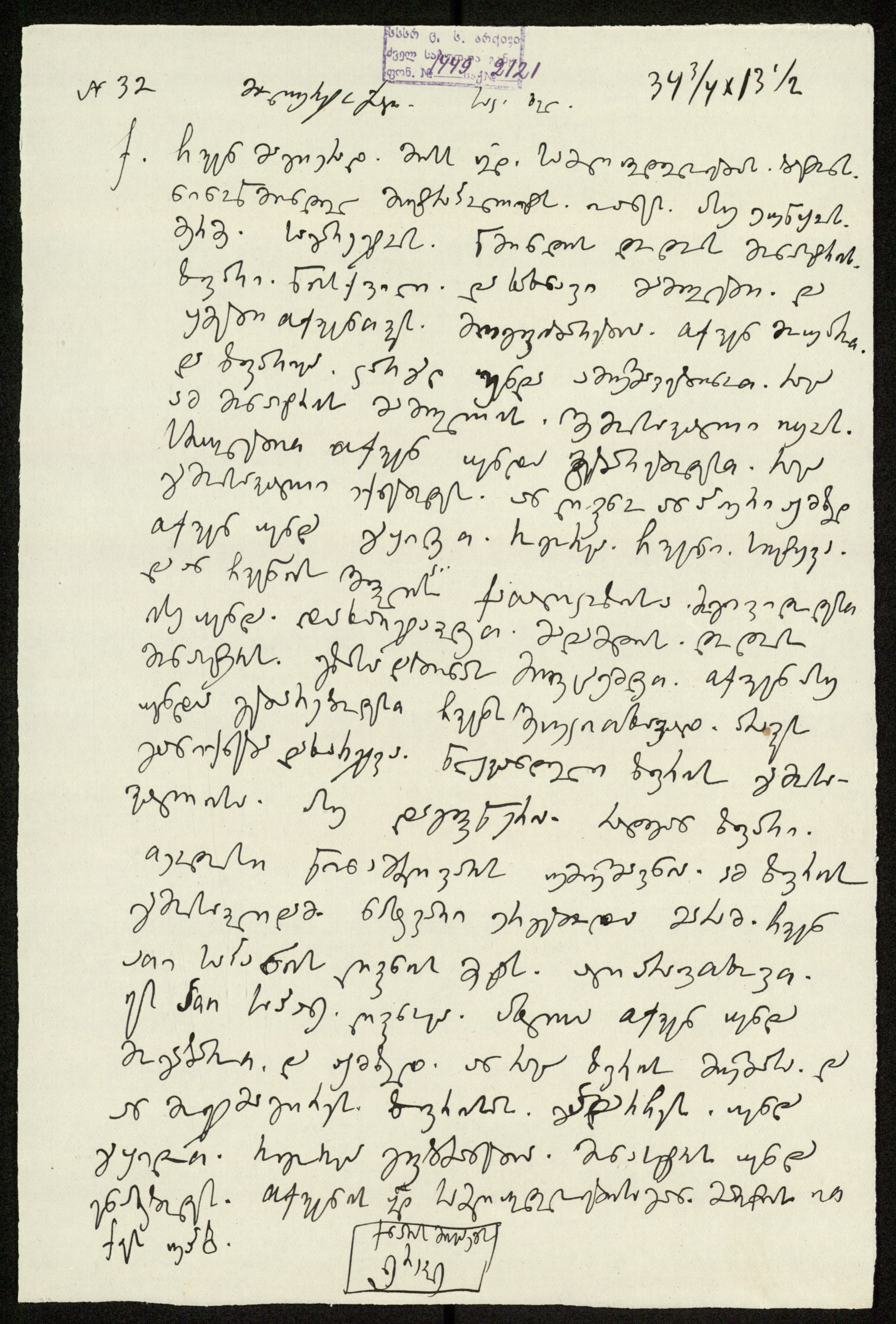 2. სარგის კაკაბაძეს მითითებული აქვს საბუთის აღწერილობა, ზომა: ,,მოლურჯო ქაღ.; საკ. ხელ. ზომა-34 3/4X 13 1/2 და ძველი საარქივო-სააღრიცხვო ნომერი: N32".