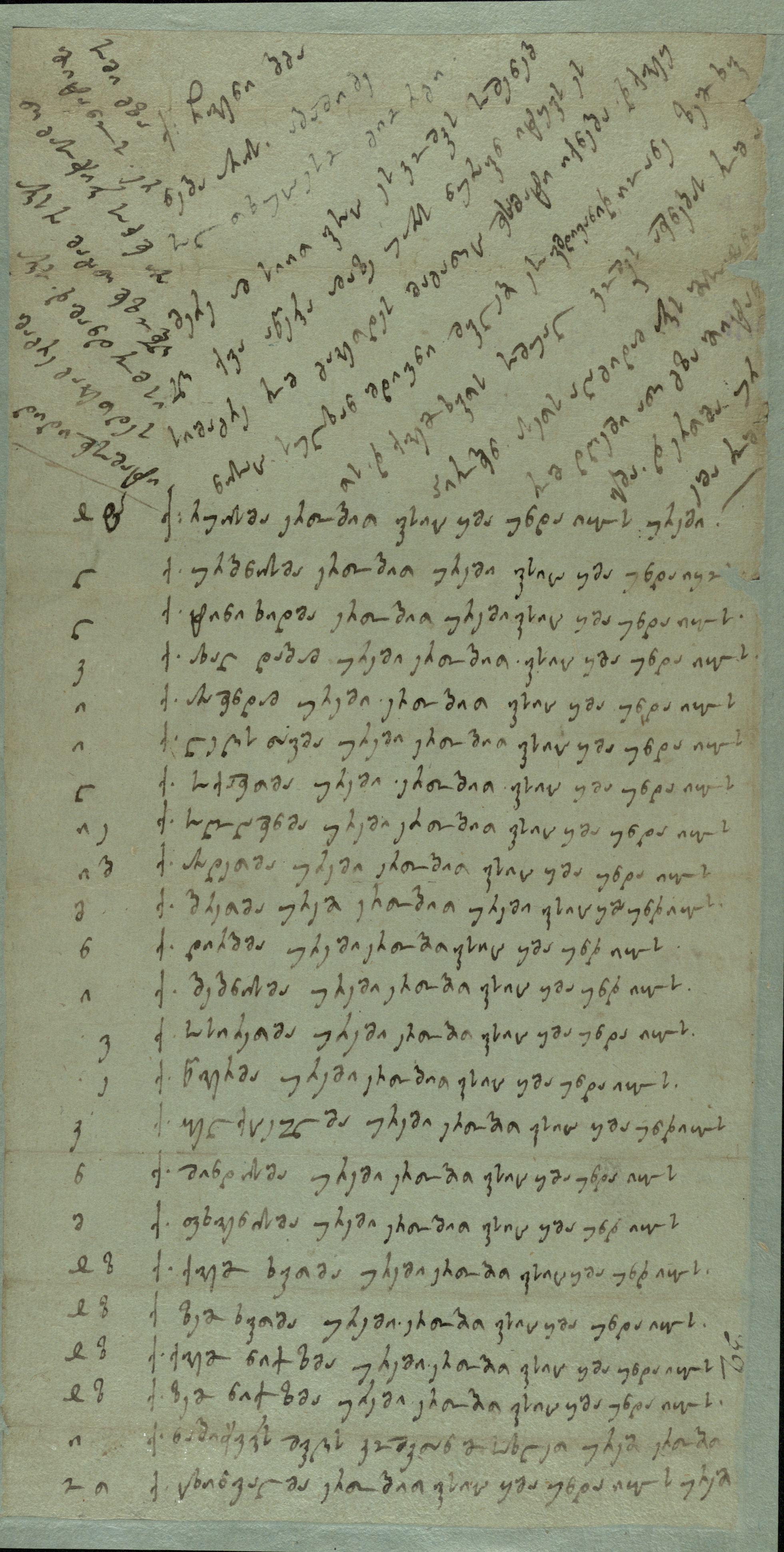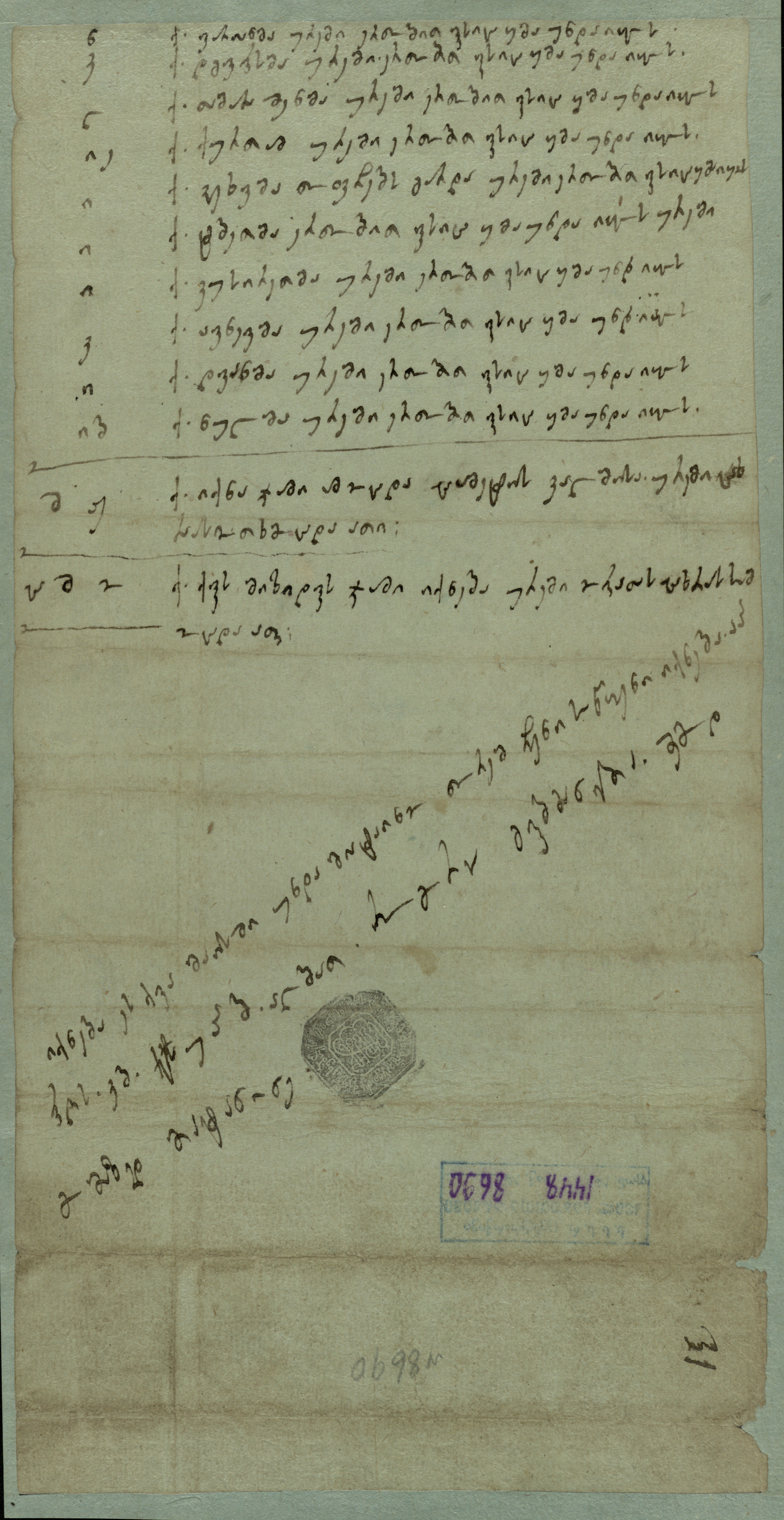 ჭვირნიშნიანი ქაღალდი მწვანე, შესრულებული შავი მელნით