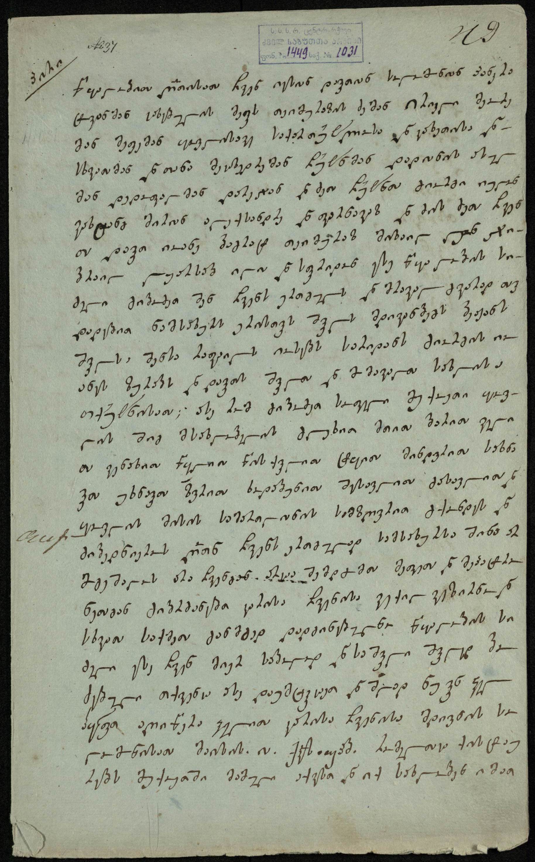 ქაღალდი ცისფერი, დაწერილი შავი მელნით