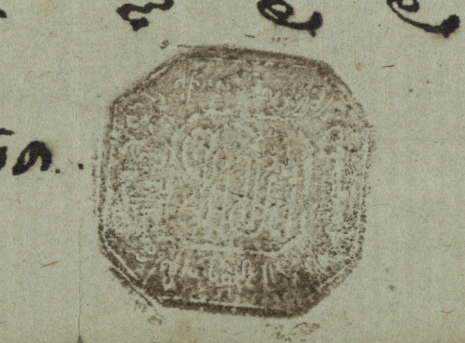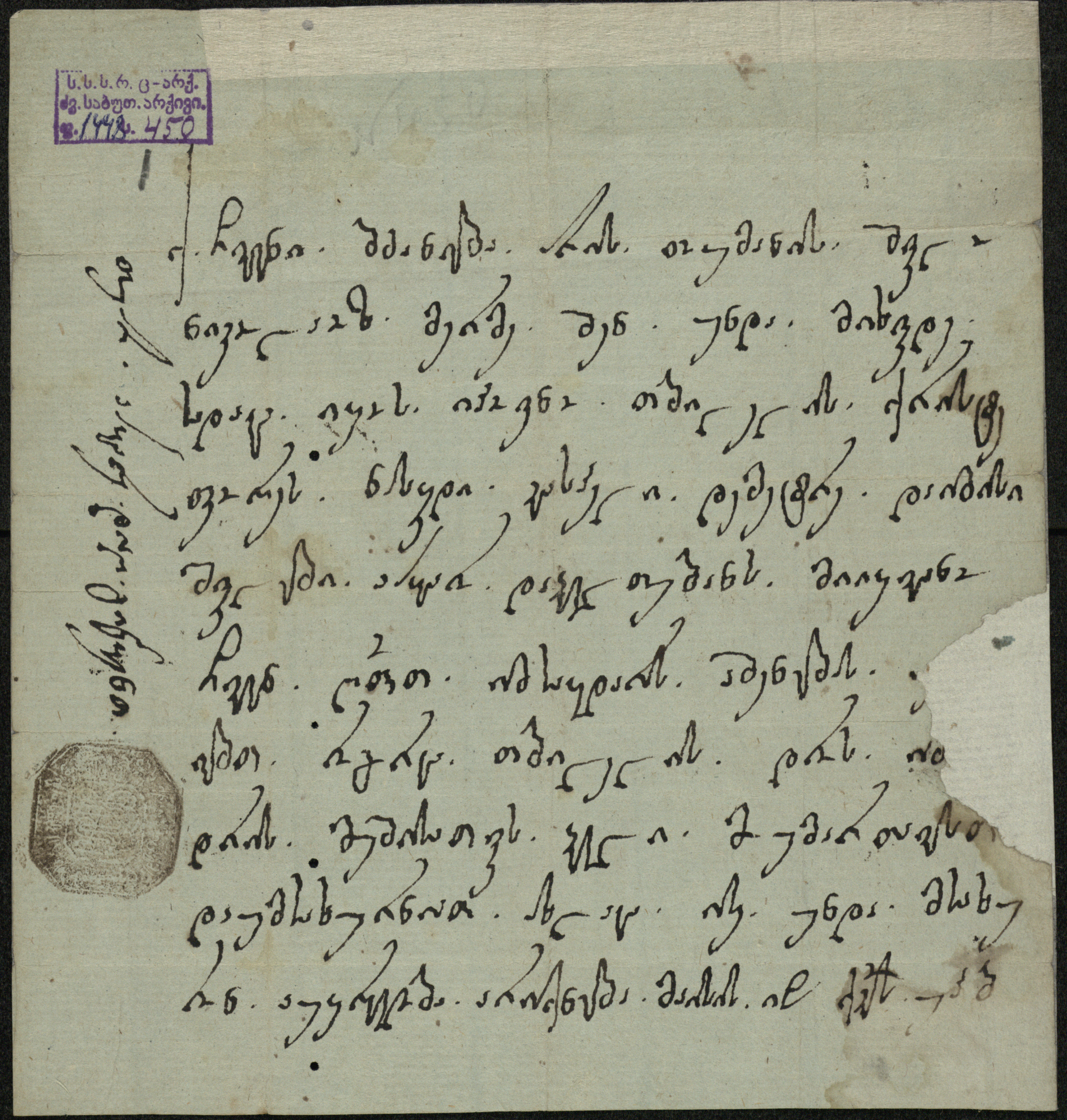 ჭვირნიშნიანი ქაღალდი ცისფერი, შესრულებული შავი მელნით