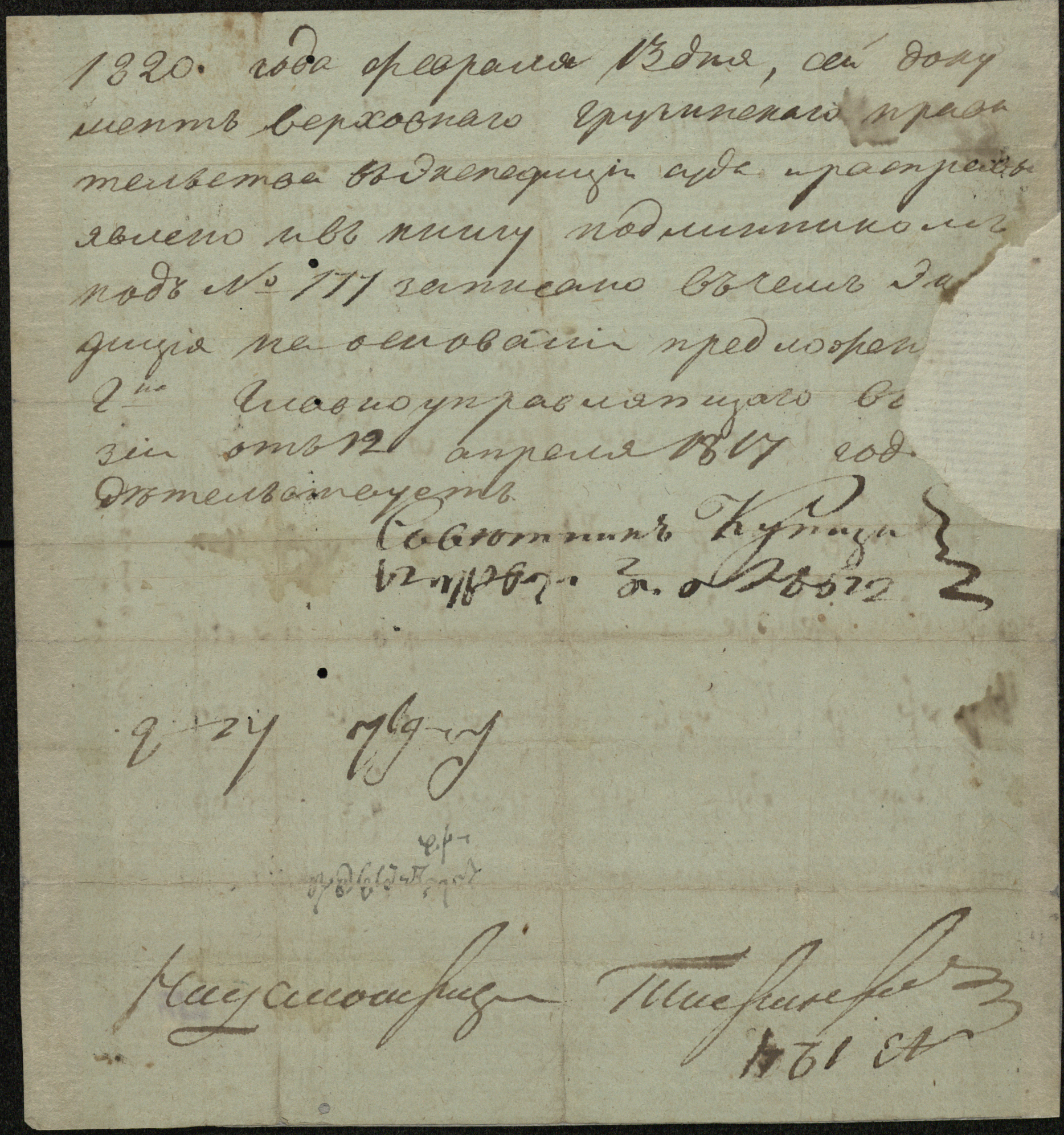 რეგისტრირებულია რუსეთის ადმინისტრაციის მიერ 1820 წ. 13 თებერვალს, სოვეტნიკი დიმიტრი თარხანოვი.