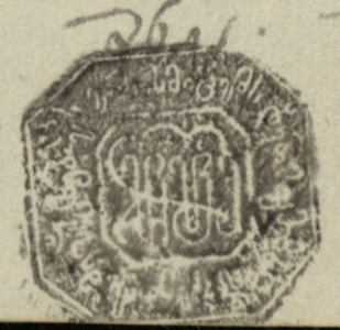 ჭვირნიშნიანი ქაღალდი ნაცრისფერი, შესრულებული შავი მელნით
