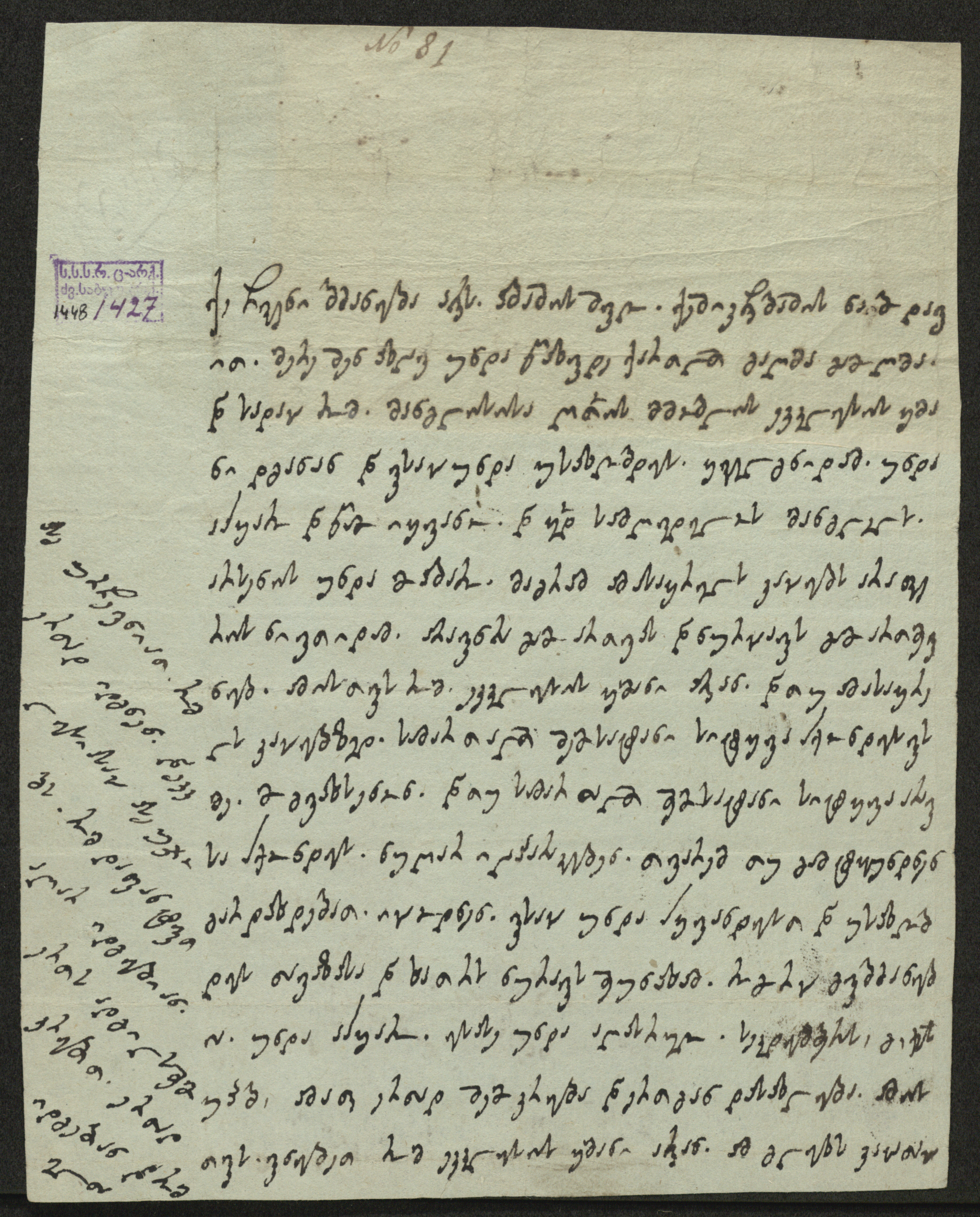 1. მინაწერი საბუთის v-ზე: ,,Манглисъ кр. 482 (1794), Цар Ираклии; N81, მანგლისისა.