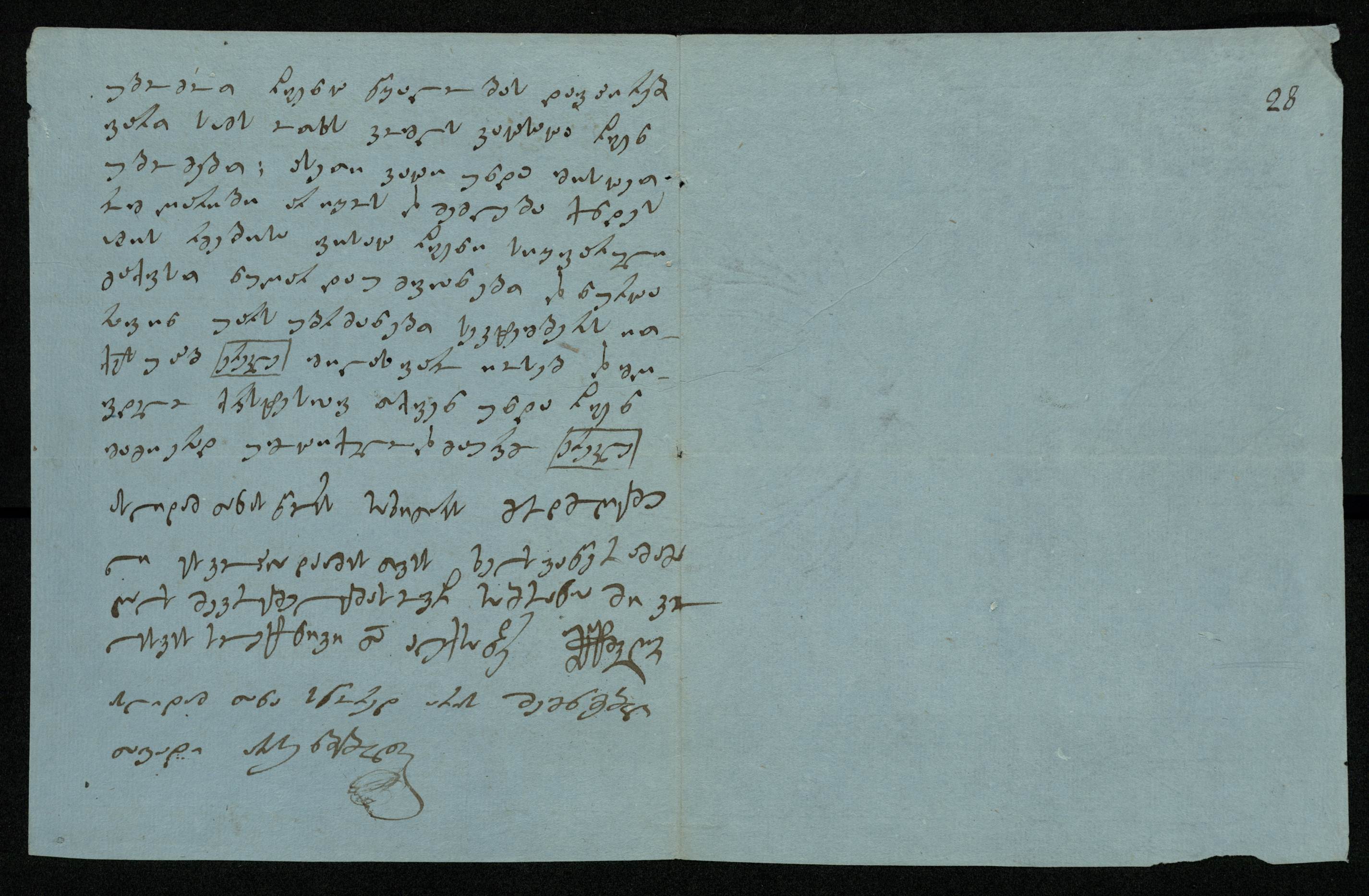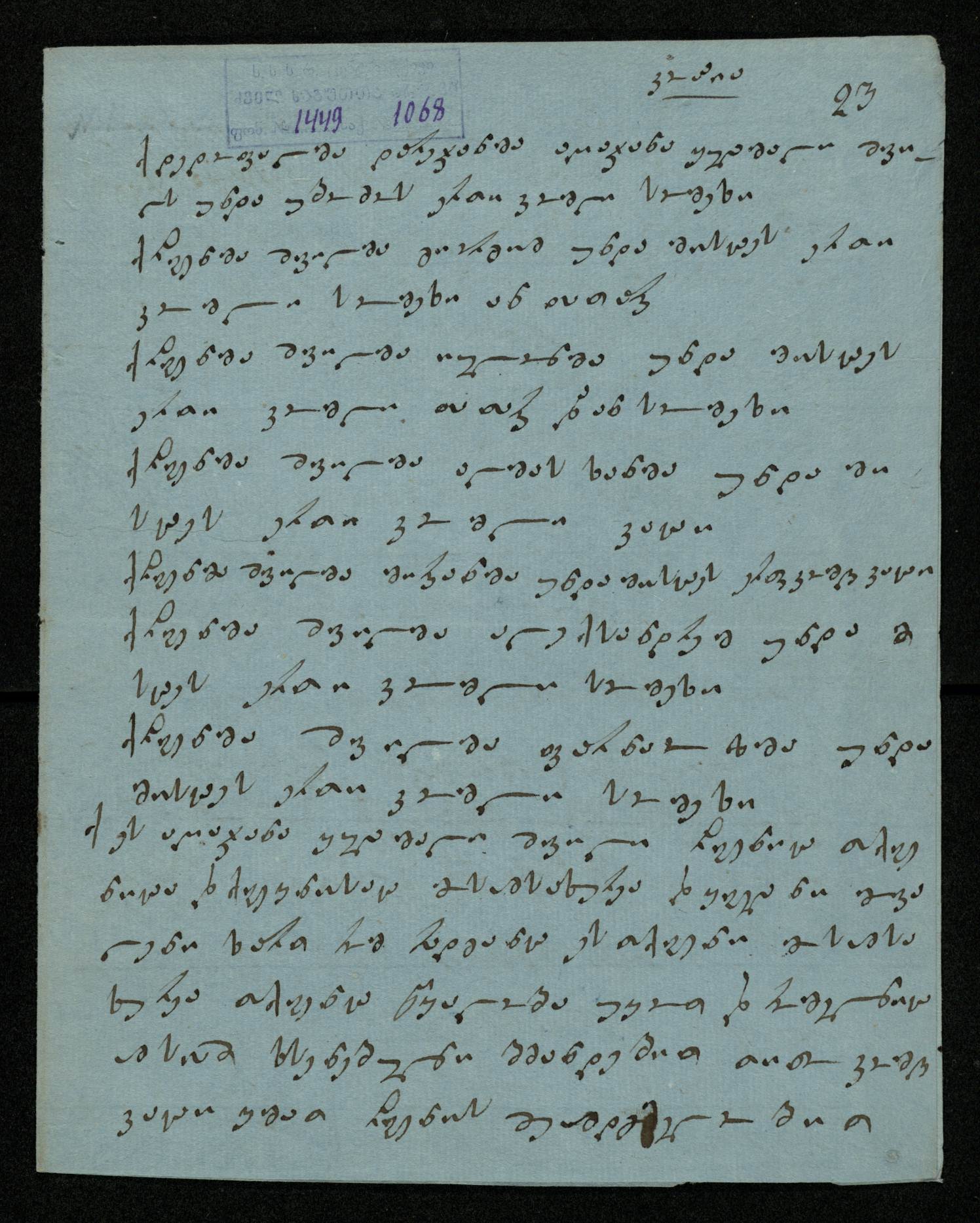 ჭვირნიშნიანი ქაღალდი ცისფერი, დაწერილი ყავისფერი მელნით