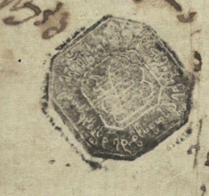 ჭვირნიშნიანი ქაღალდი ნაცრისფერი, შესრულებული ყავისფერი მელნით
