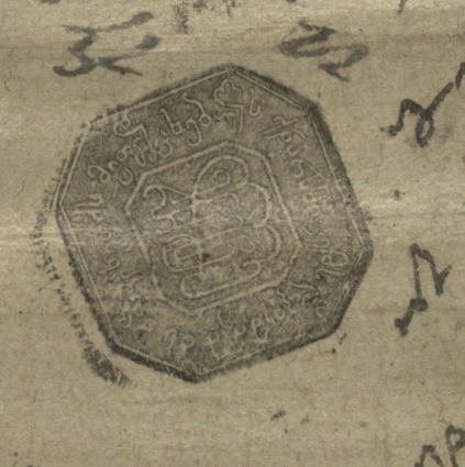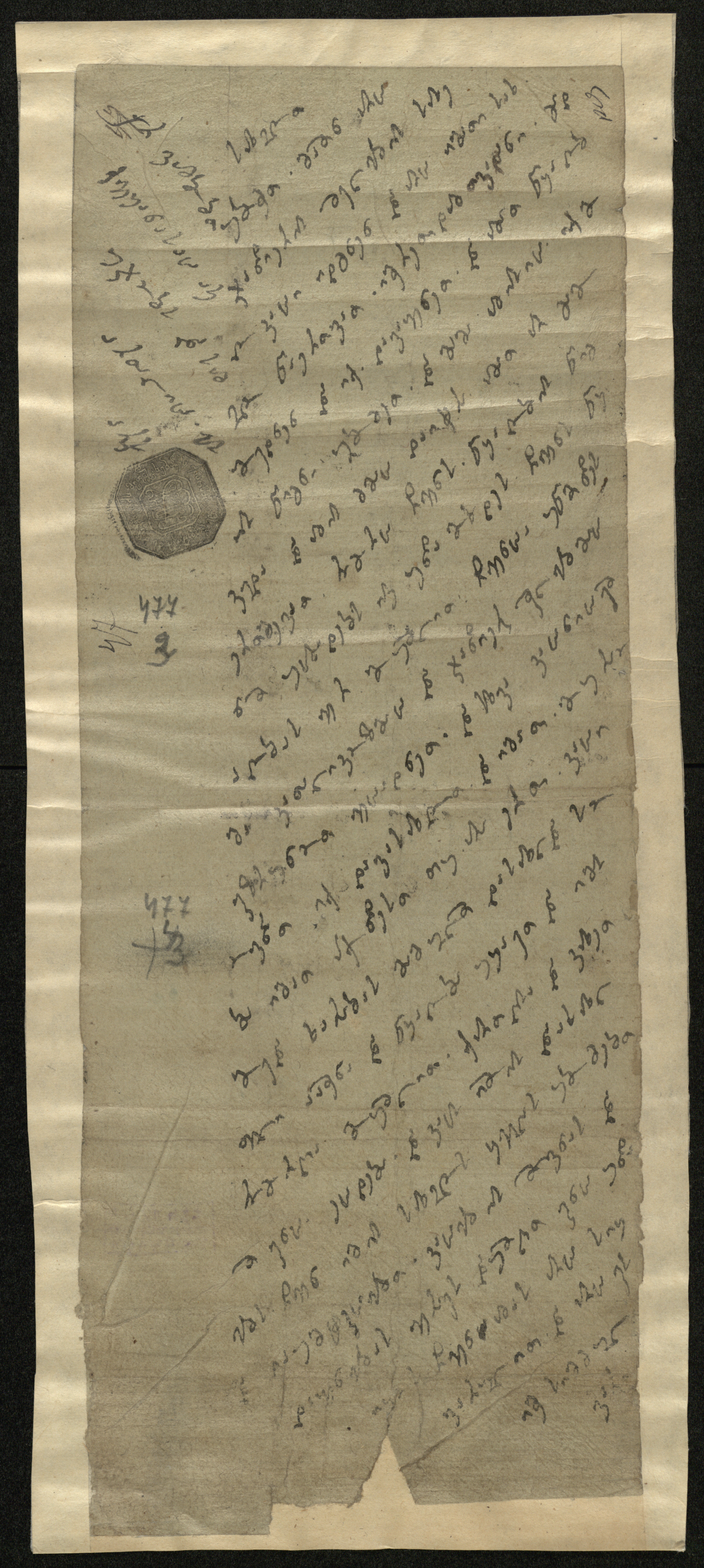 ჭვირნიშნიანი ქაღალდი მწვანე, შესრულებული ყავისფერი მელნით