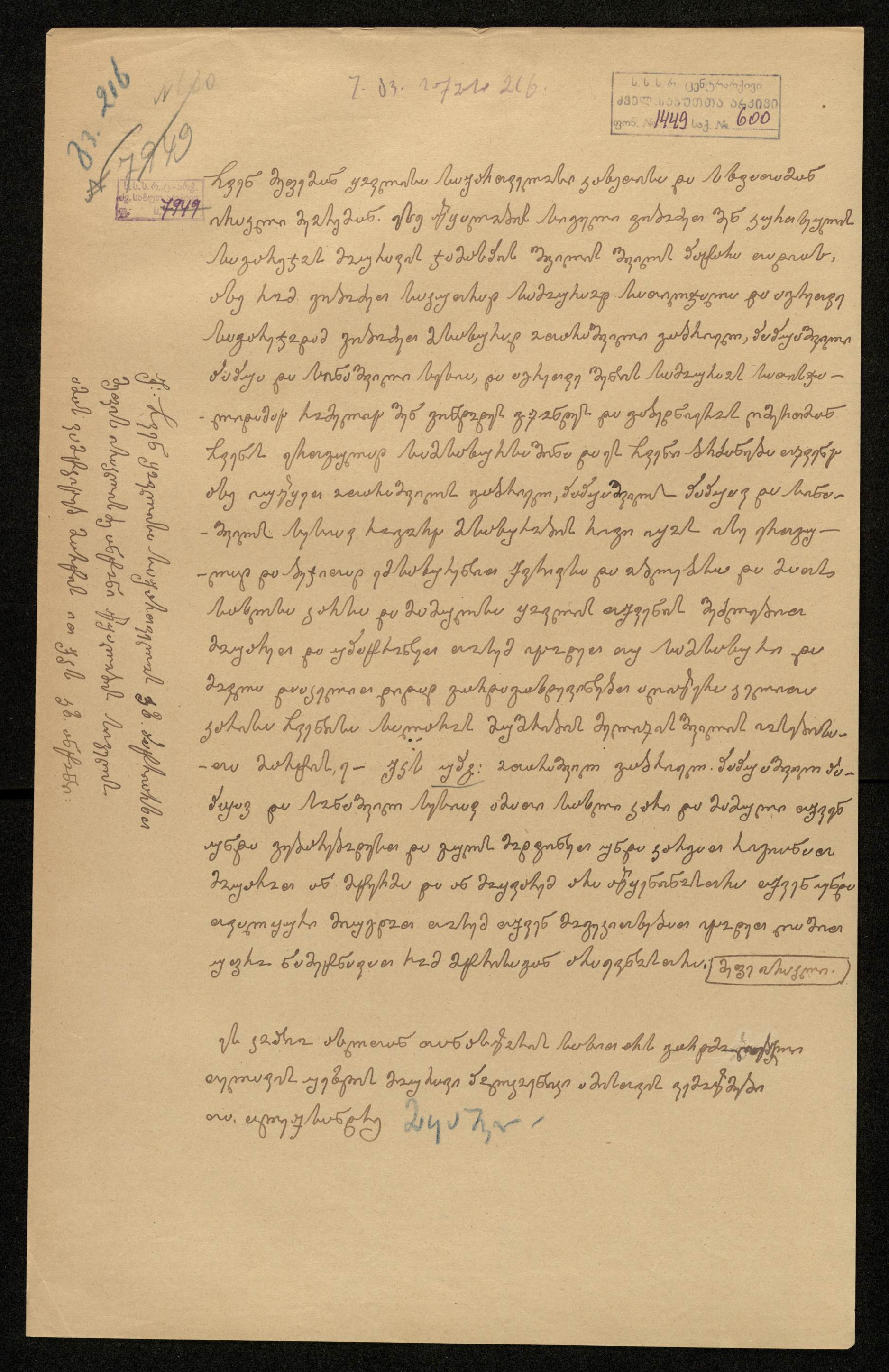 საბუთი გადაწერილია XIX ს-ის I მეოთხედში.