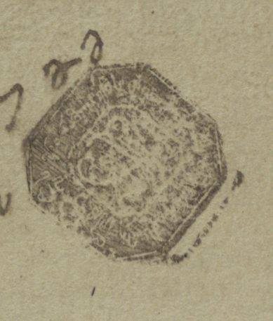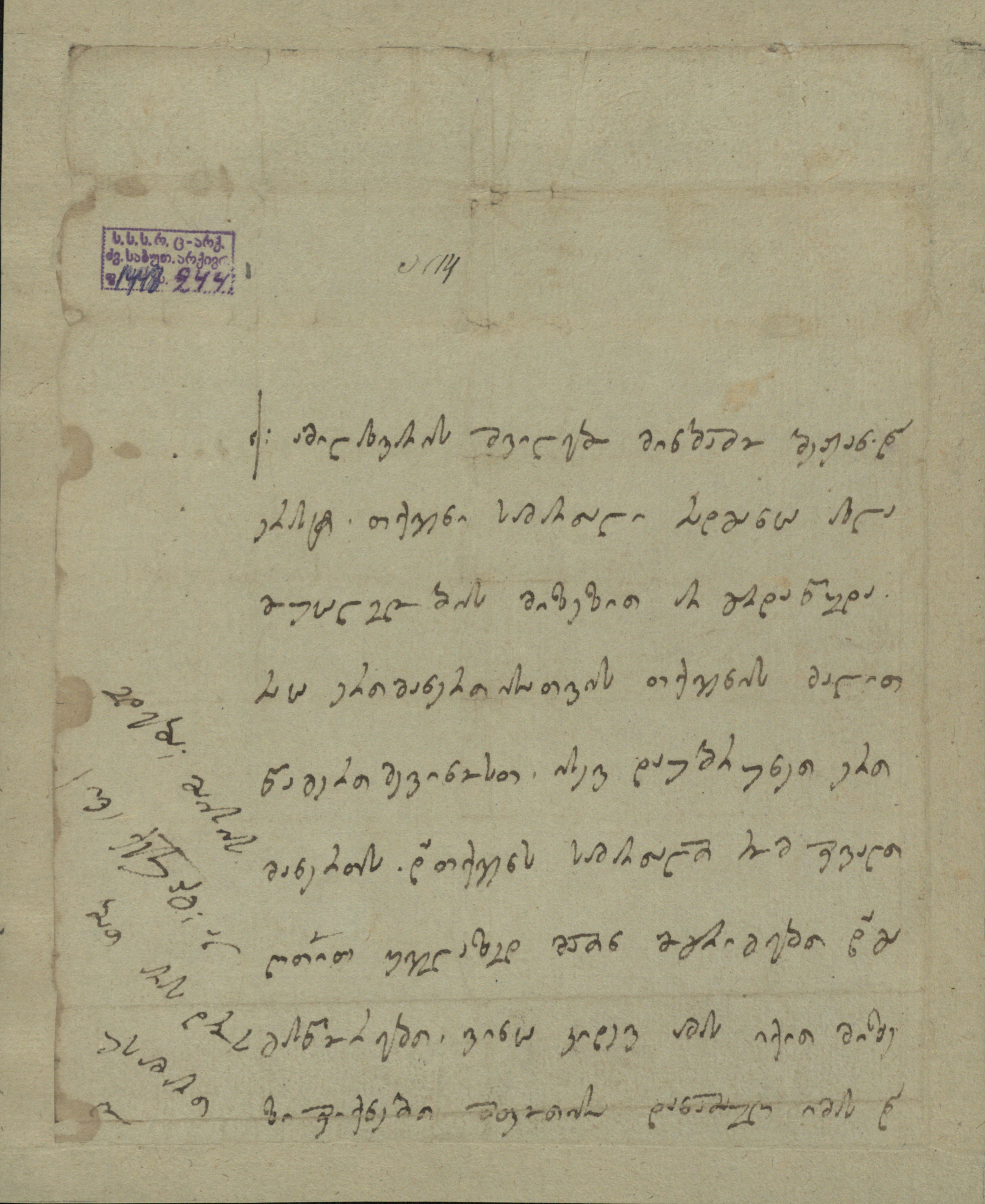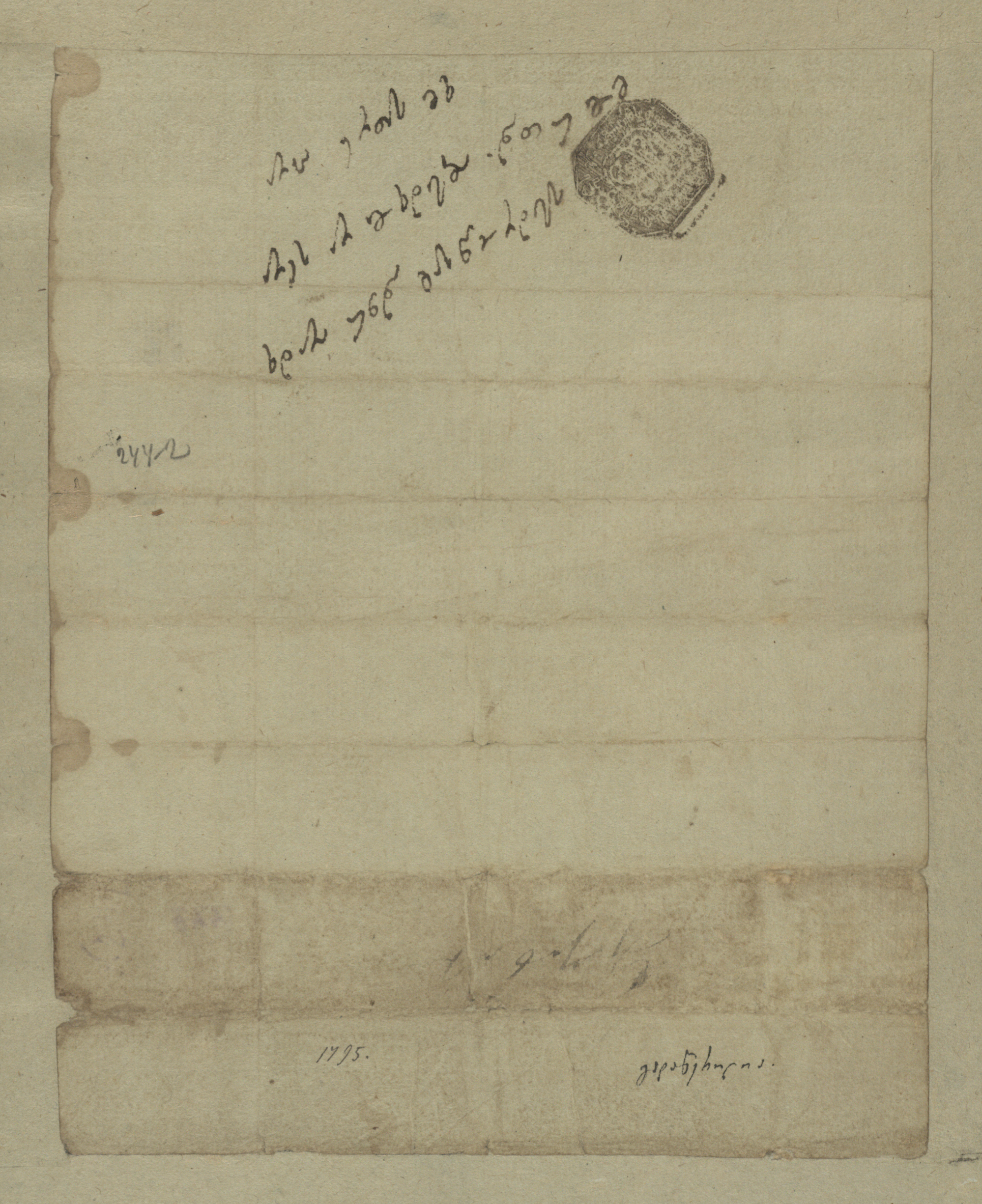 ჭვირნიშნიანი ქაღალდი მწვანე, შესრულებული ყავისფერი მელნით.