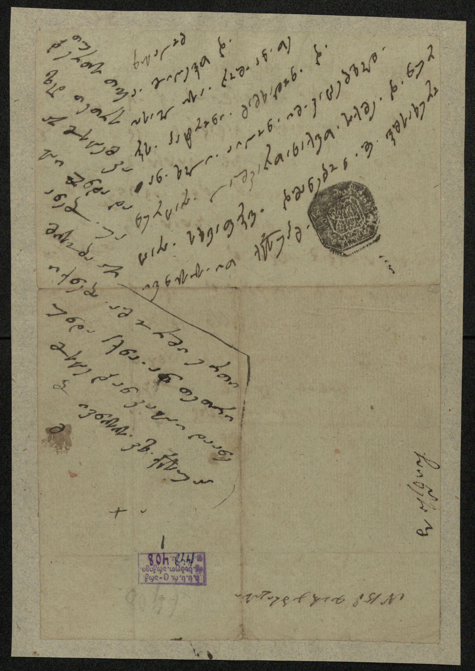 მწვანე ქაღალდი ჭვირნიშნით, შესრულებული ყავისფერი მელნით