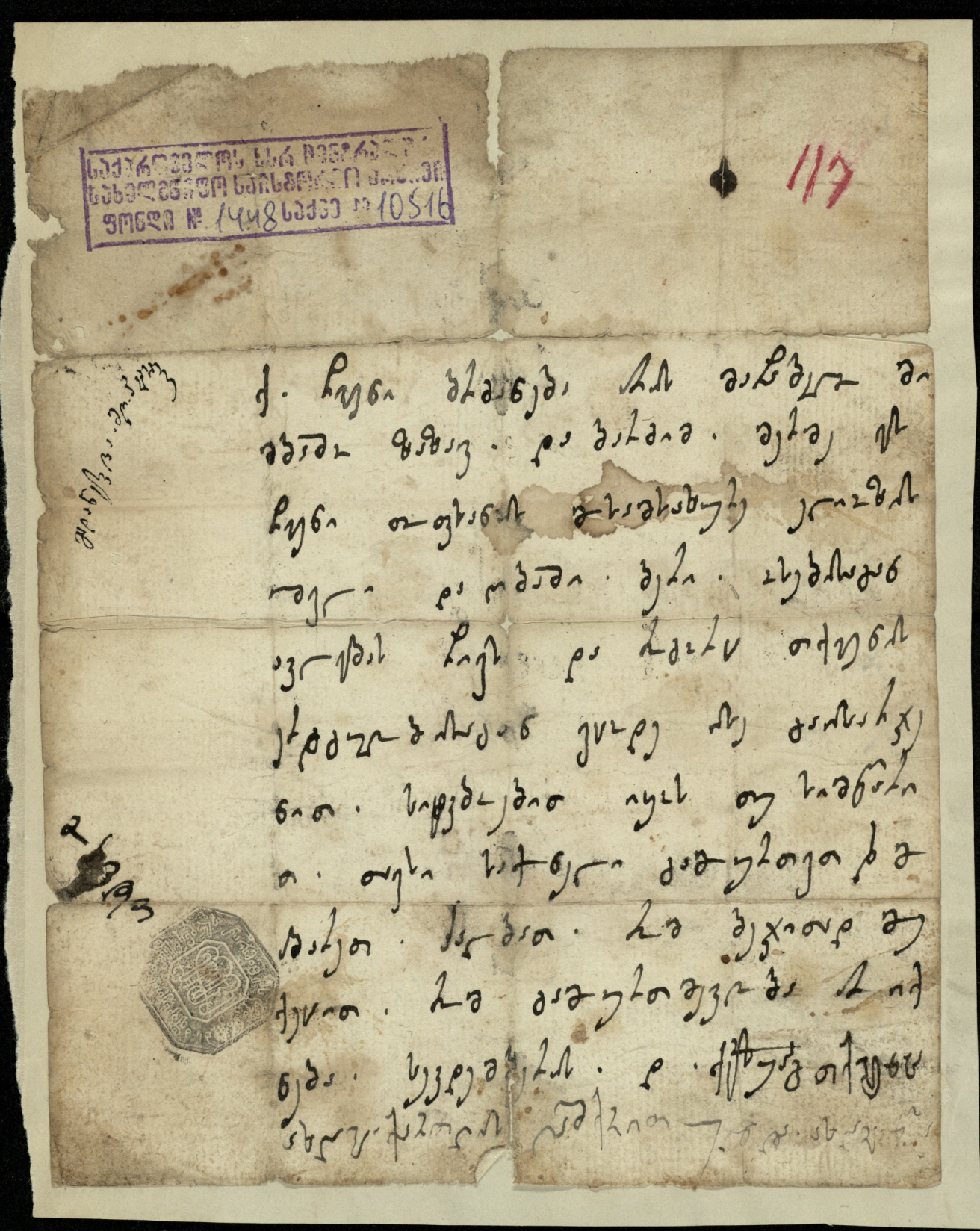 ქაღალდი ყავისფერი, შესრულებული შავი მელნით
