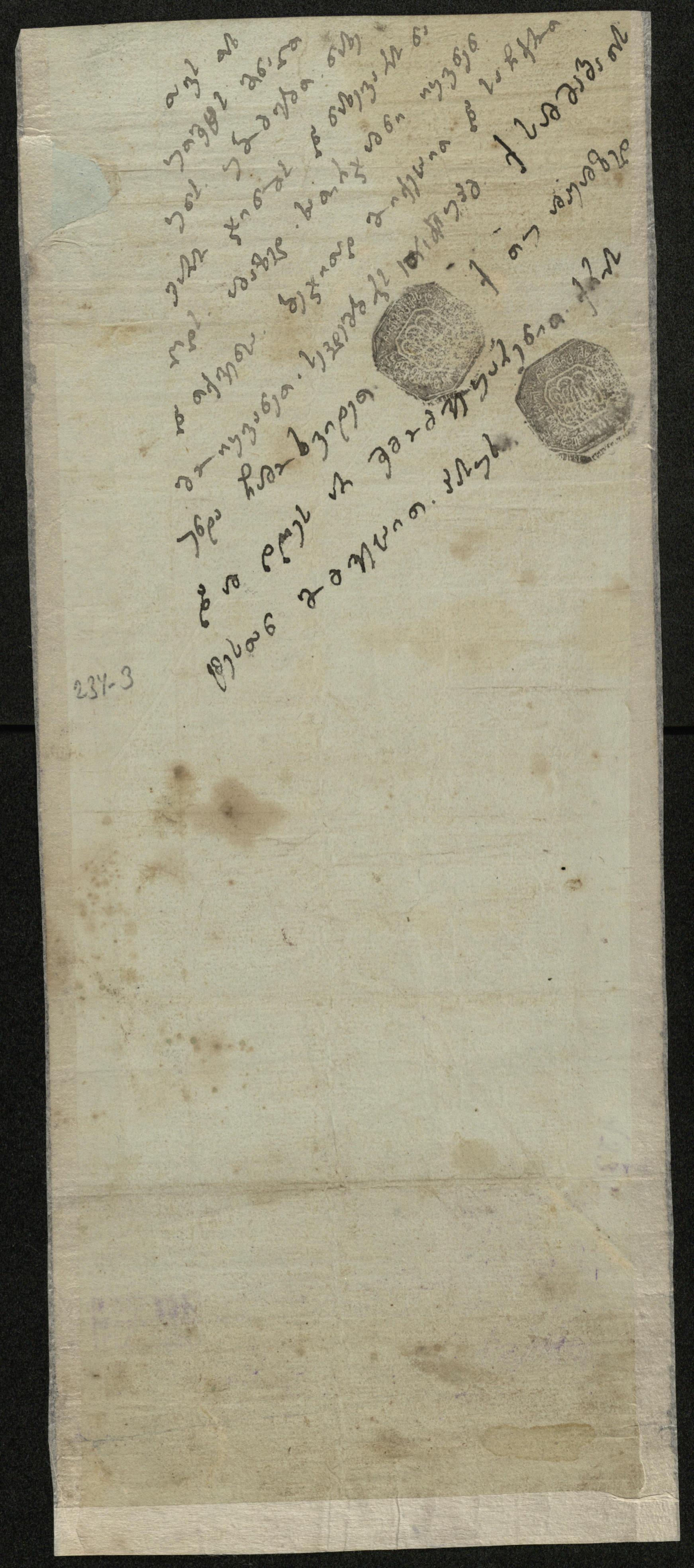 ჭვირნიშნიანი ქაღალდი მწვანე, შესრულებული შავი მელნით
