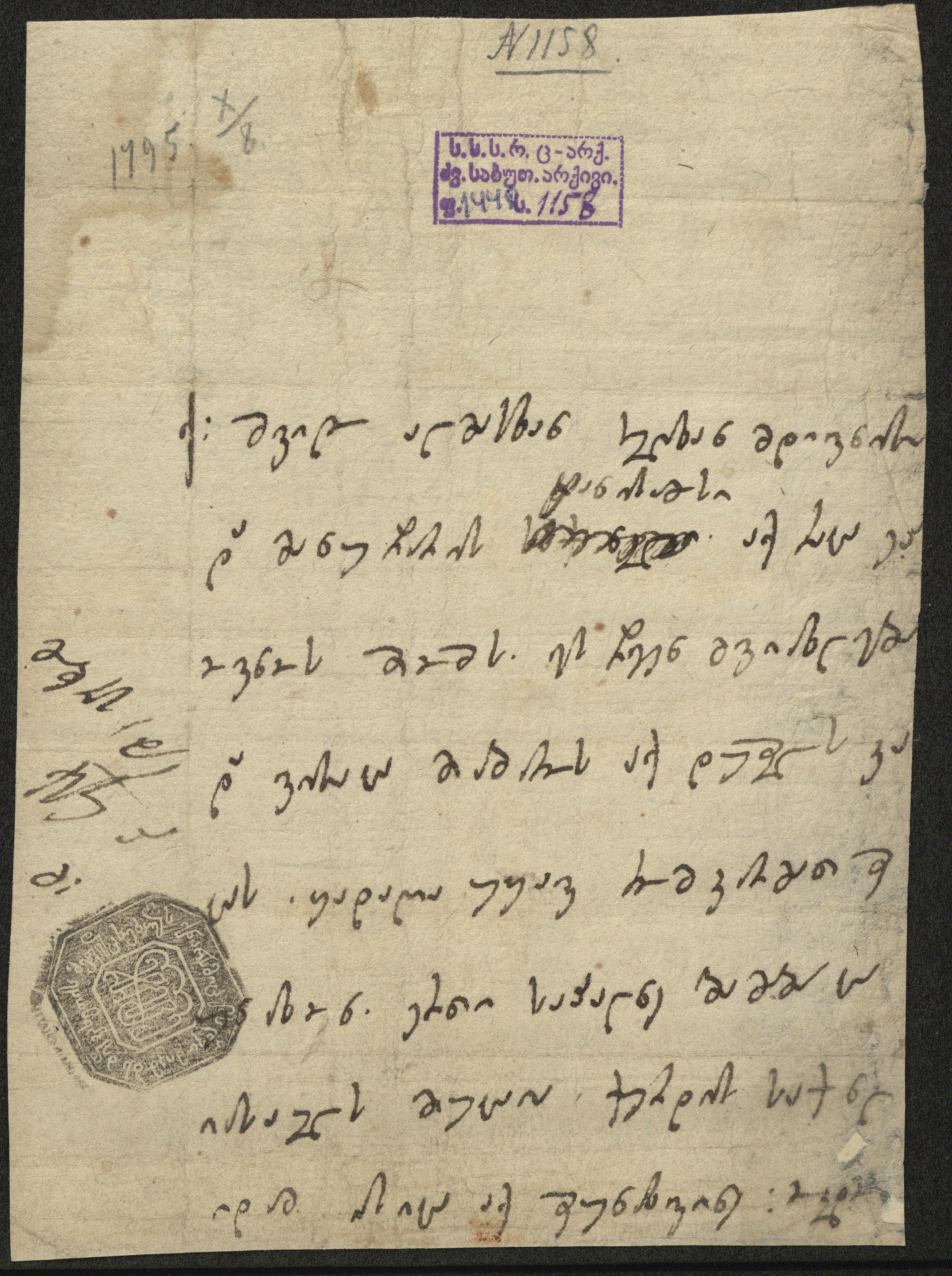1. მინაწერი თავში ფანქრით სავარაუდიდ პოლიევკტოს კარბელაშვილის ხელით: 1795, X/8.
