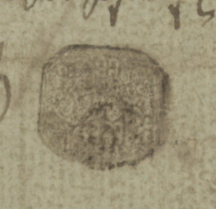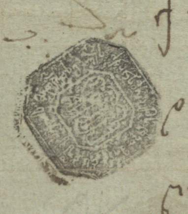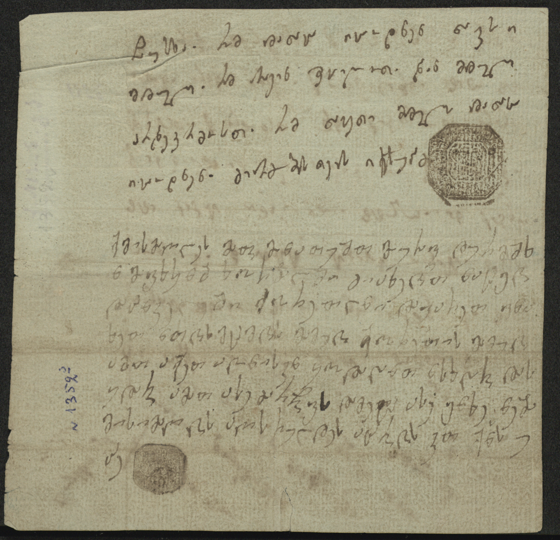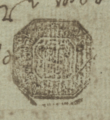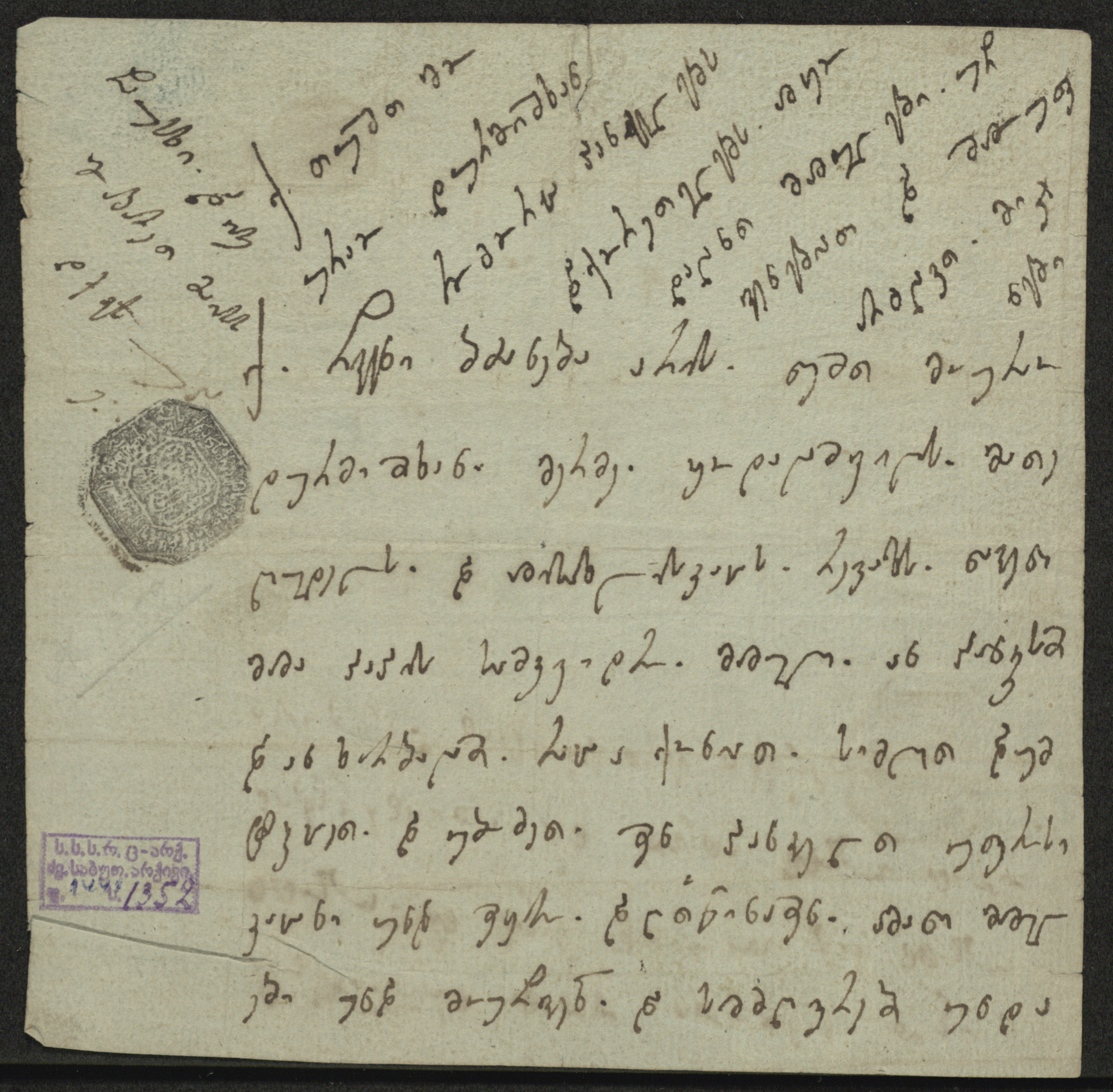 ჭვირნიშნიანი ქაღალდი ცისფერი, შესრულებული ყავისფერი მელნით