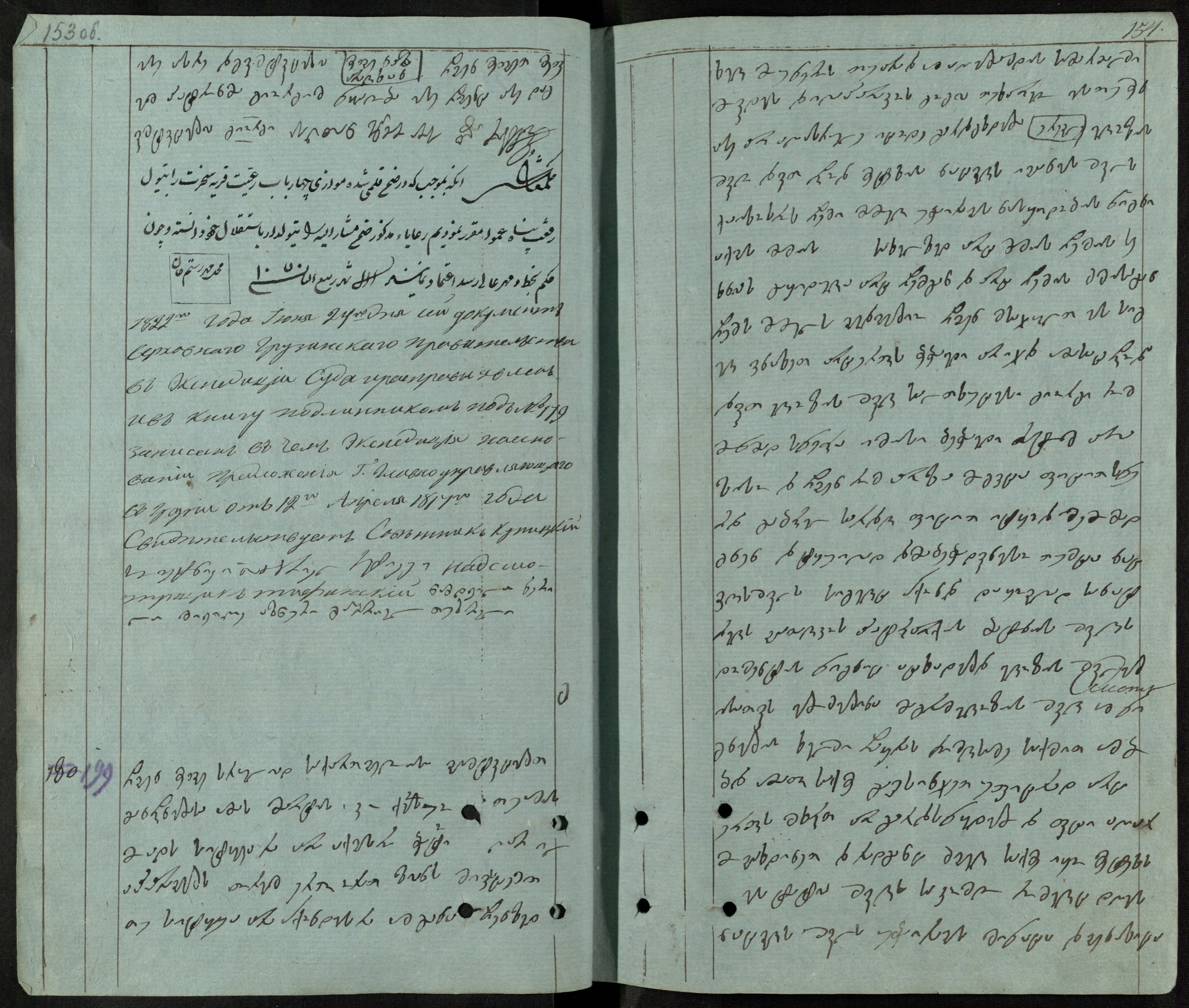 ცისფერი ქაღალდი, დაწერილი შავი მელნით