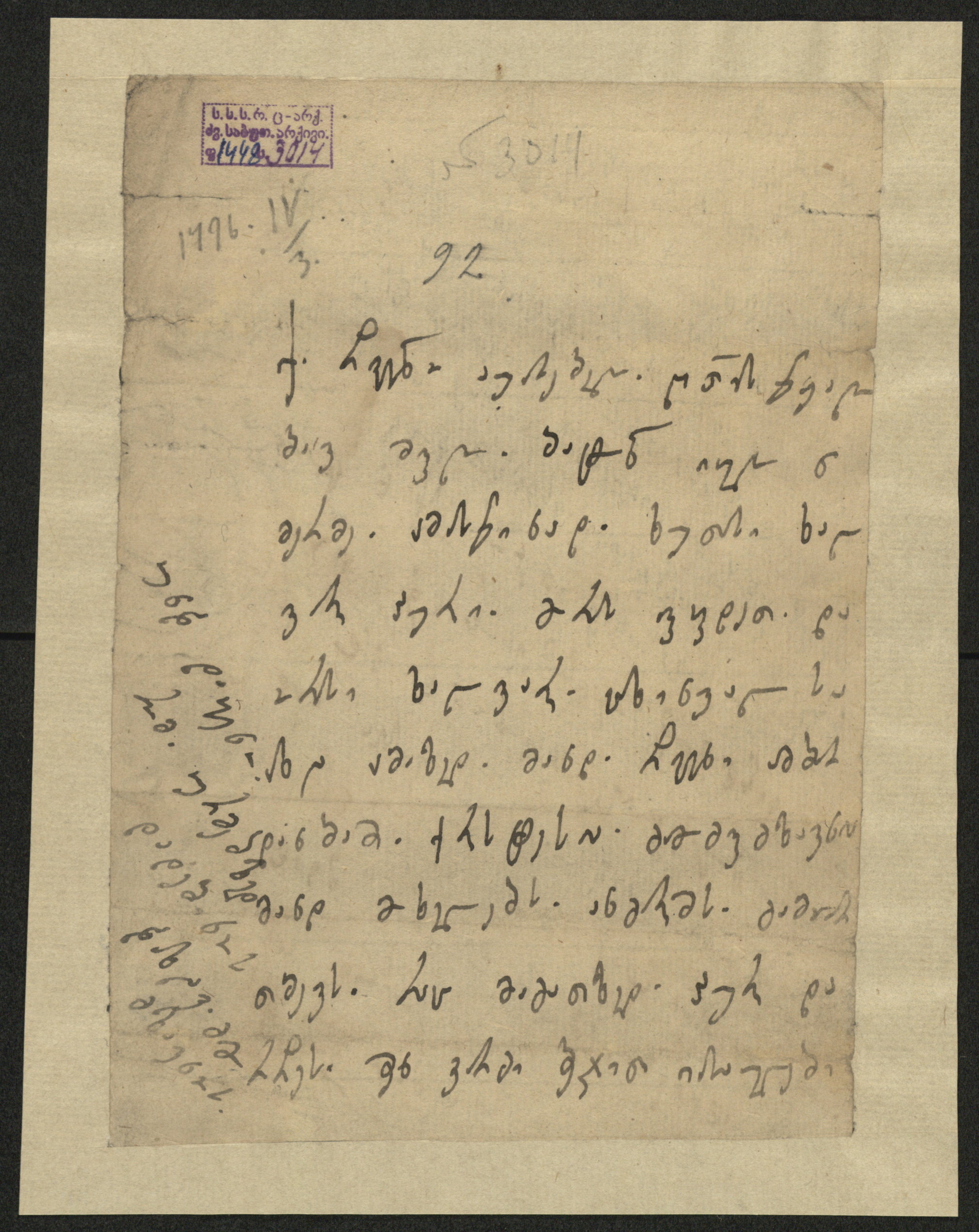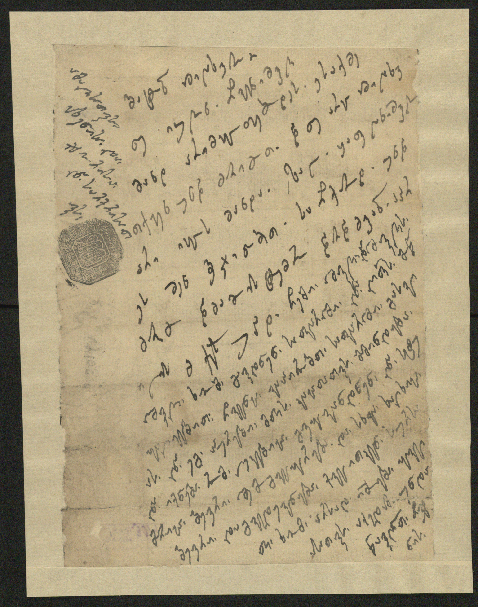 ყავისფერი ქაღალდი ჭვირნიშნით, დაწერილი შავი მელნით