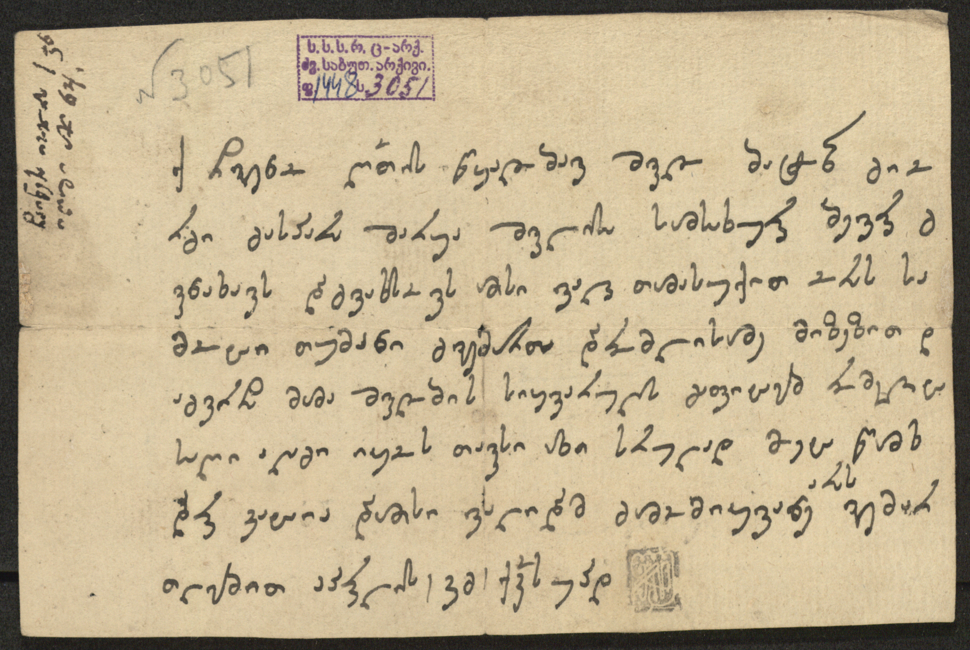 1. მინაწერი საბუთის მარცხენა ზედა კიდეზე: ,,ჩაიწერა ირაკლის 1კნიღაში, N64.