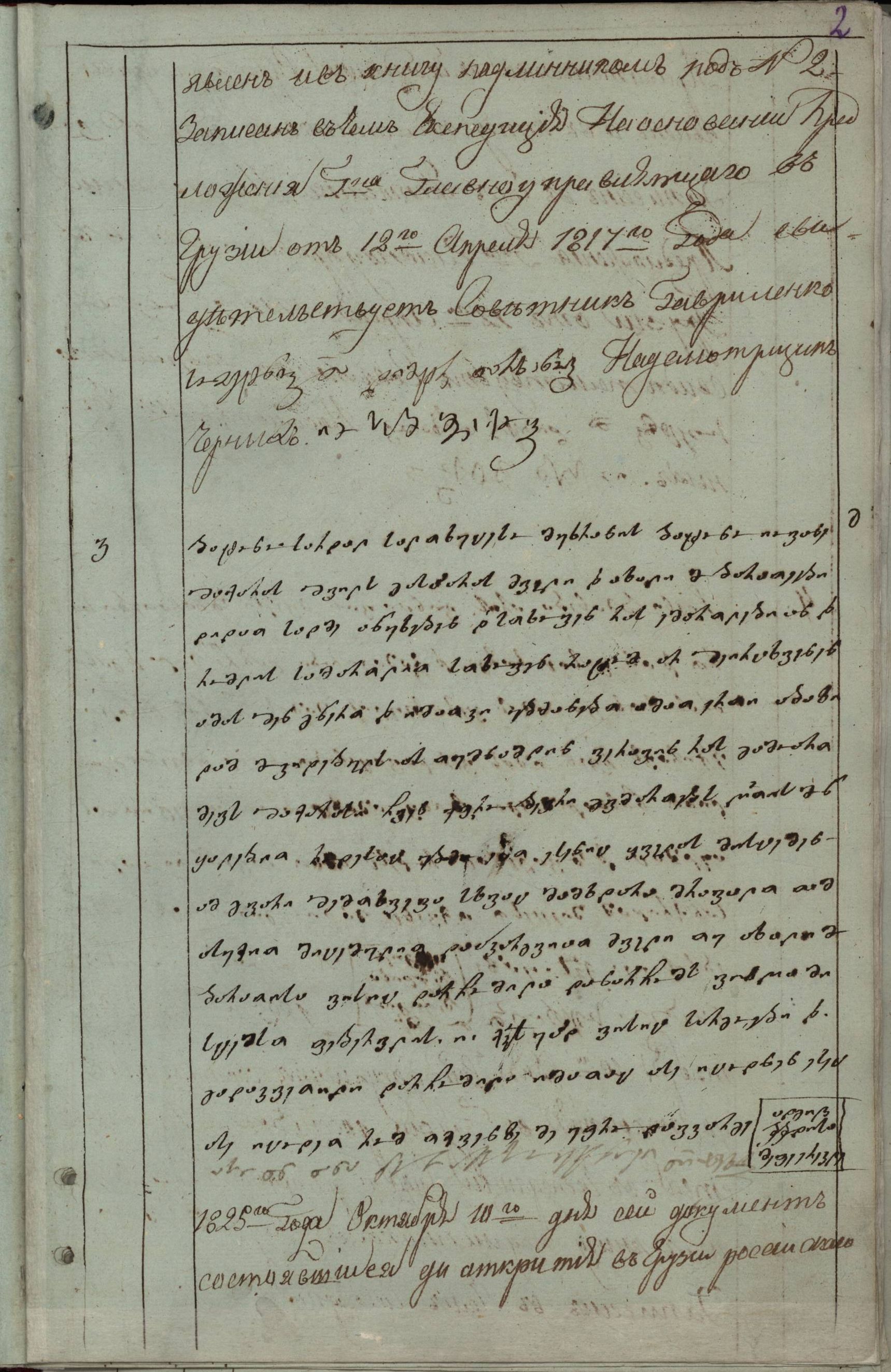 1. რეგისტრირებულია რუსეთის ადმინისტრაციის მიერ 1825 წ. 10 ოქტომბერს, სოვეტნიკი დიმიტრი თარხანოვი.