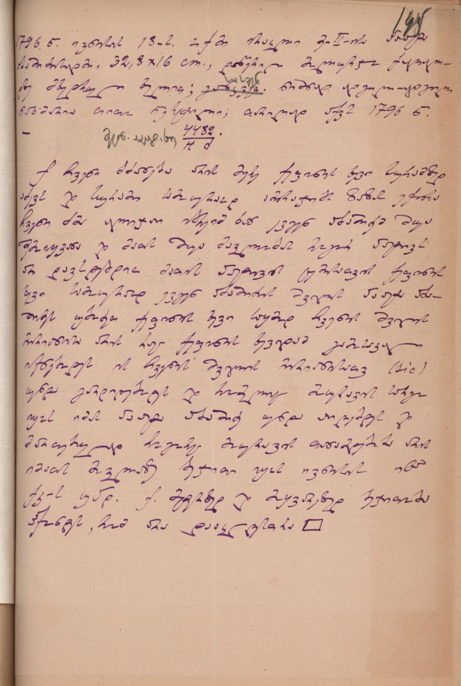 2. დედნის აღწერა გიორგი ბოჭორიძის მიერ: ,,დედანი, 32,8X16 cm., დაწერილი მოლურჯო ქაღალდზე მხედრული ხელით; განკვეთილობის ნიშნად ადგილ-ადგილ ნახმარია თითო წერტილი".