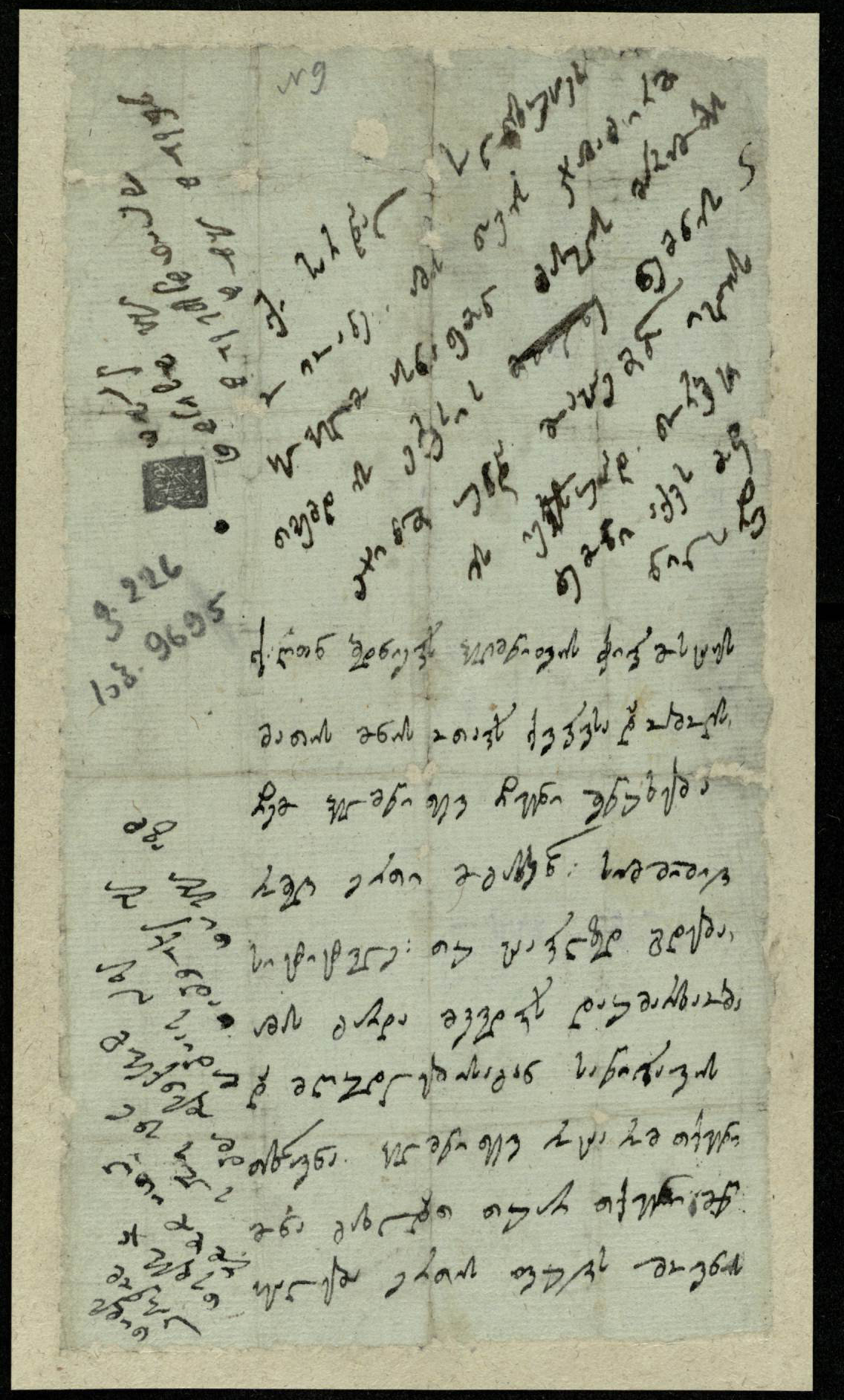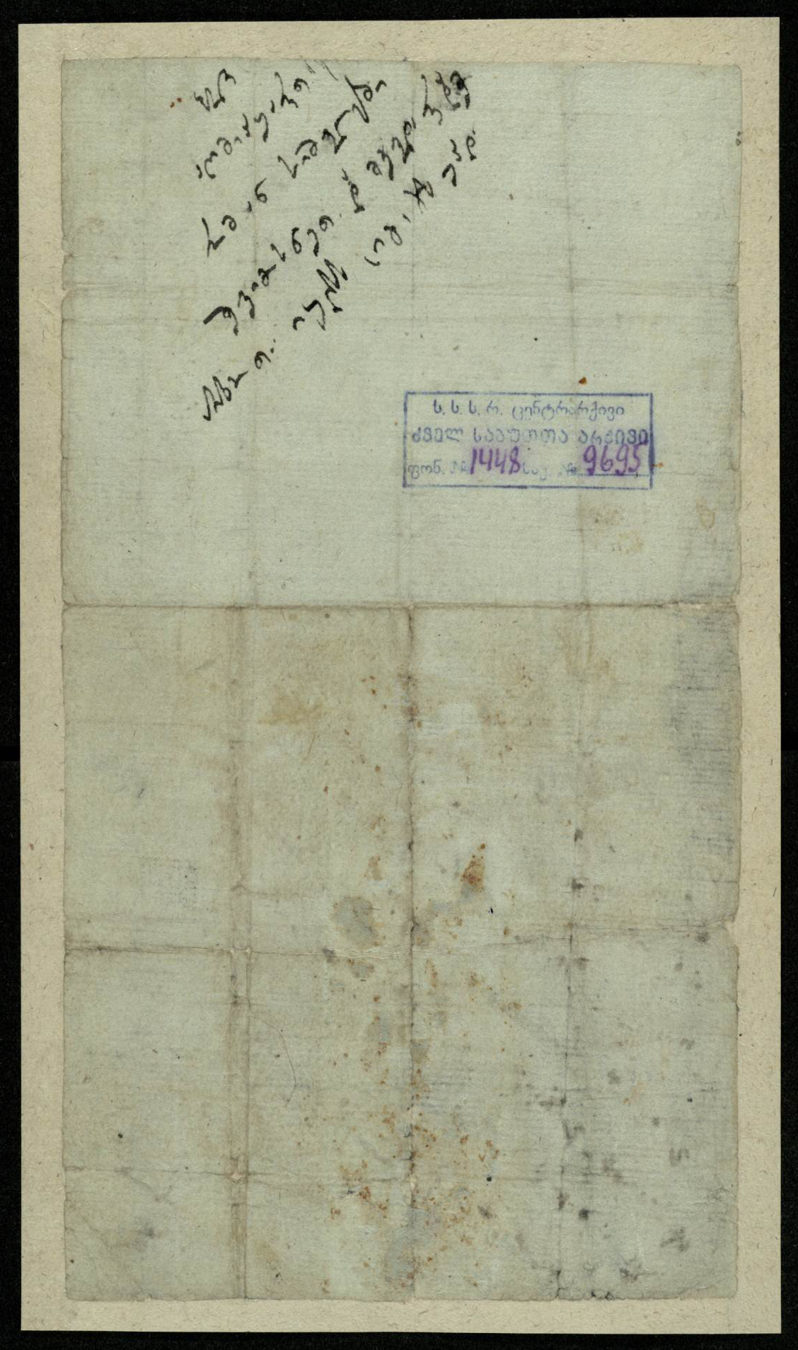 მომწვანო ქაღალდი ჭვირნიშნით, დაწერილი შავი მელნით
