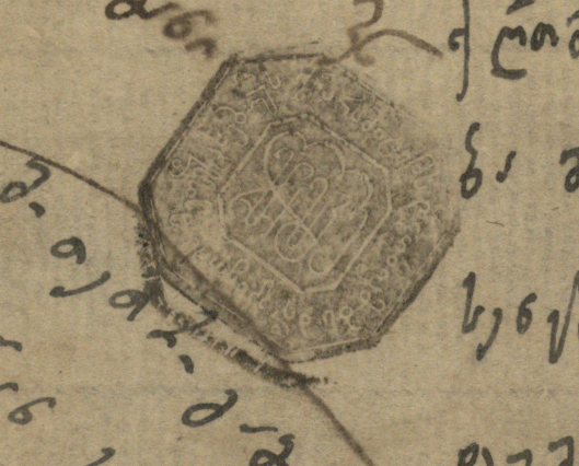 ჭვირნიშნიანი ყავისფერი ქაღალდი, შესრულებული შავი მელნით
