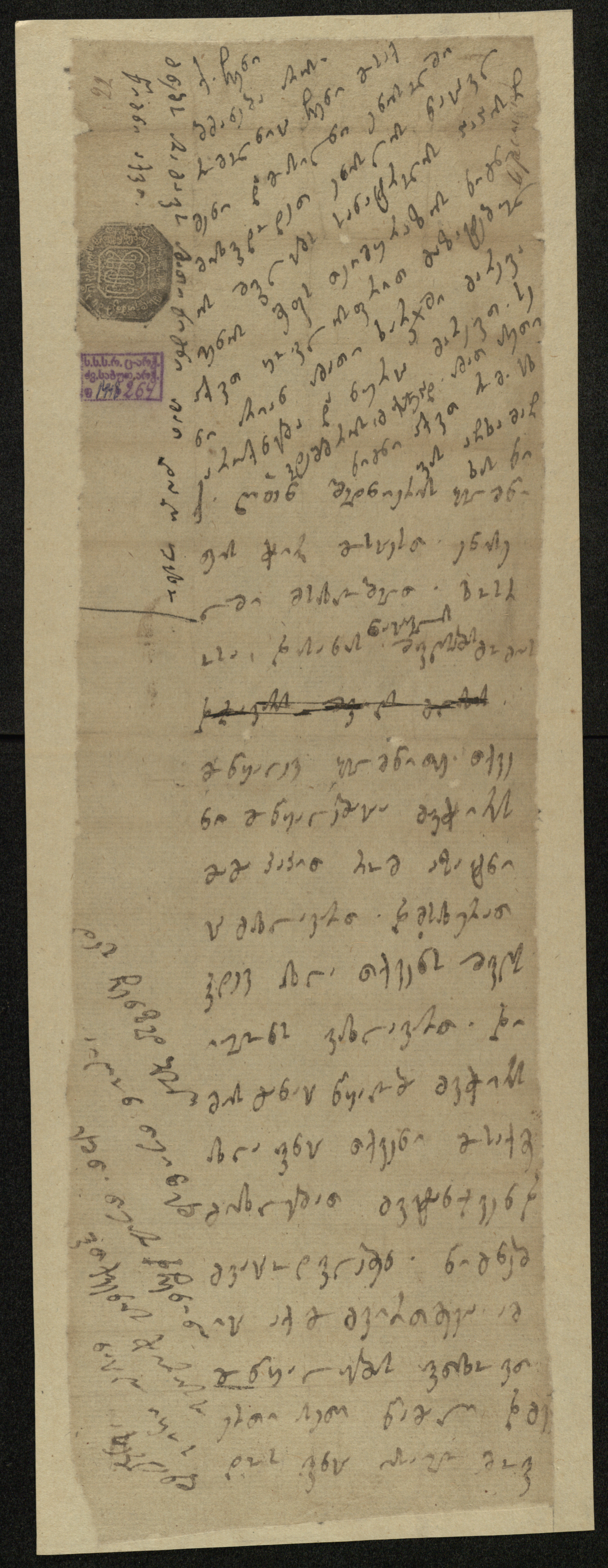 ჭვირნიშნიანი ნაცრისფერი ქაღალდი, შესრულებული შავი მელნით
