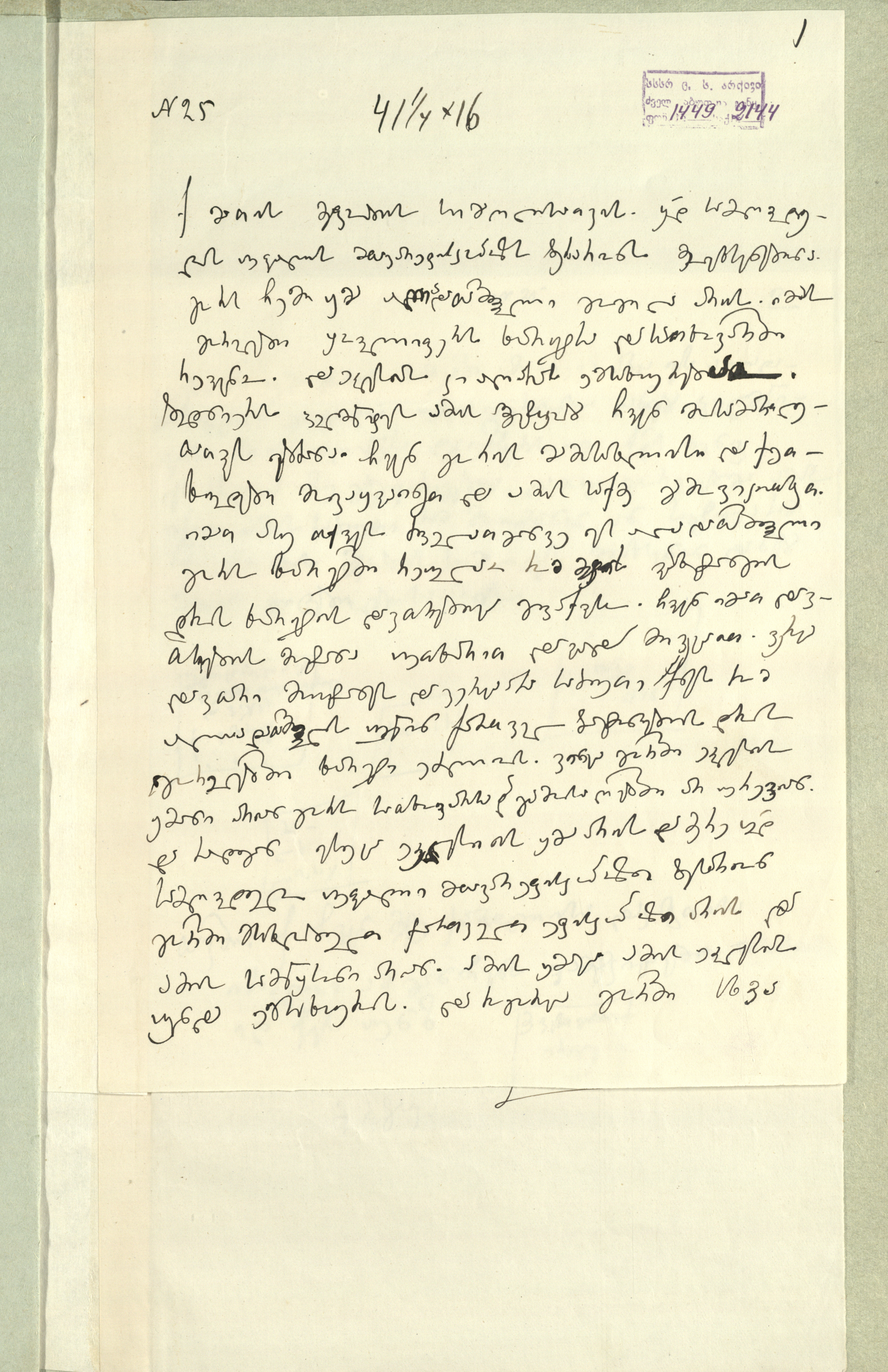 სარგის კაკაბაძეს მითითებული აქვს საბუთის დედნის ზომა 41/1,4x16 და ძველი საარქიო-სააღრიცხვო ნომერი N25.