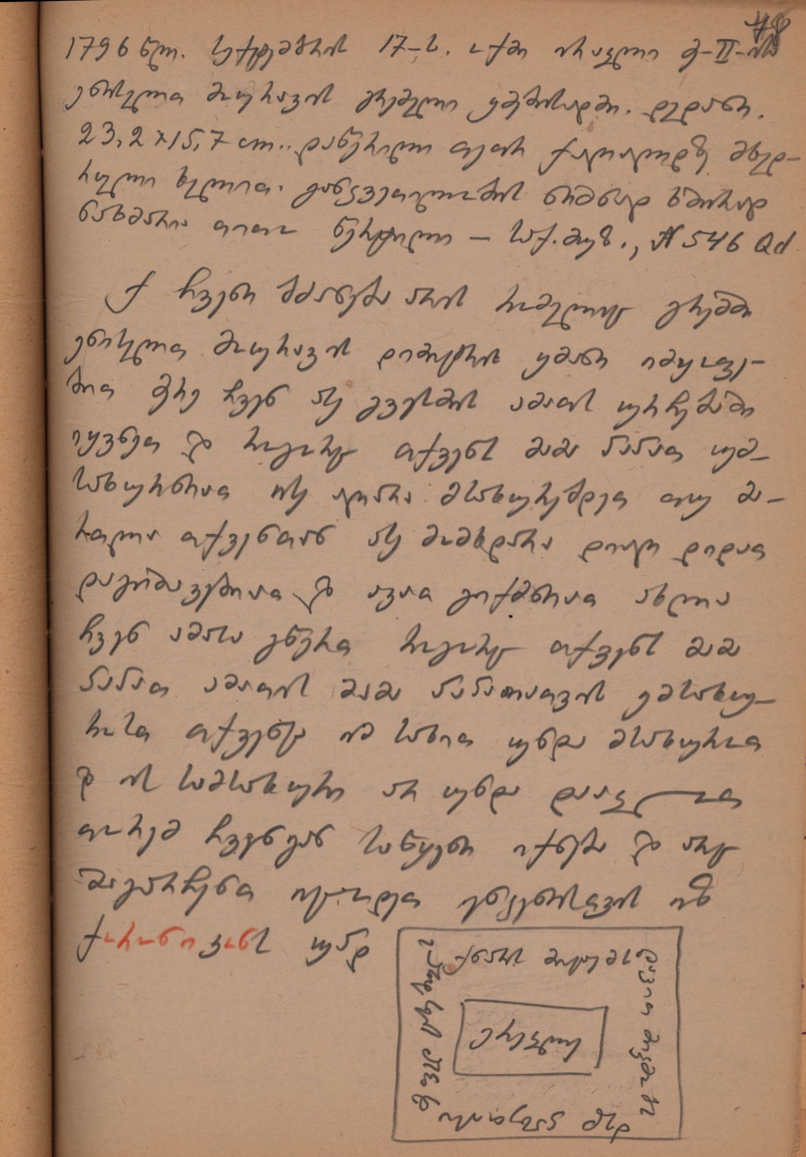 2. დედნის აღწერა გიორგი ბოჭორიძის მიერ: "დედანი, 23,2x 15,7 cm., დაწერილი თეთრ ქაღალდზე მხედრული ხელით. განკვეთილობის ნიშნად ხშირად ნახმარია თითო წერტილი".