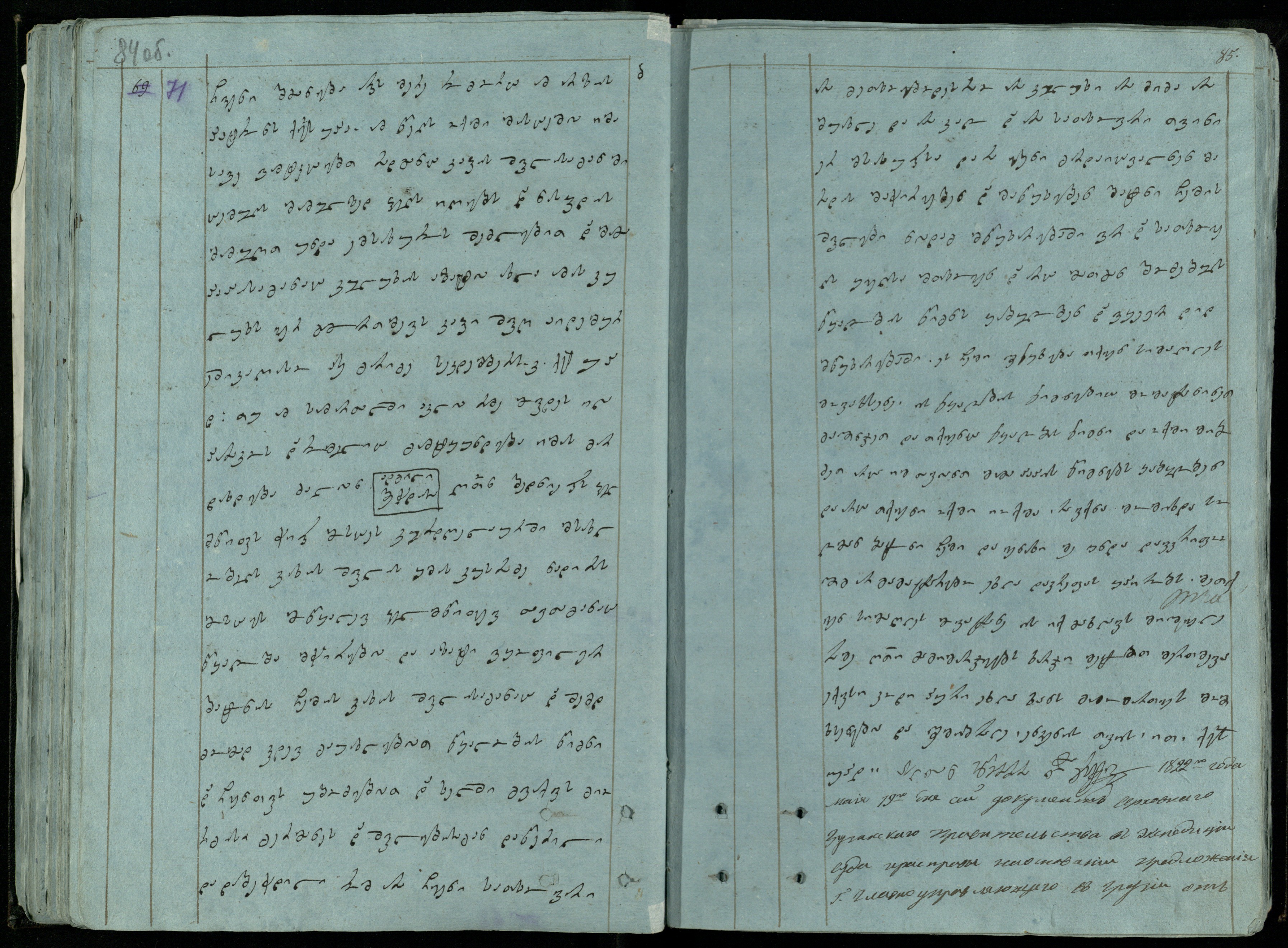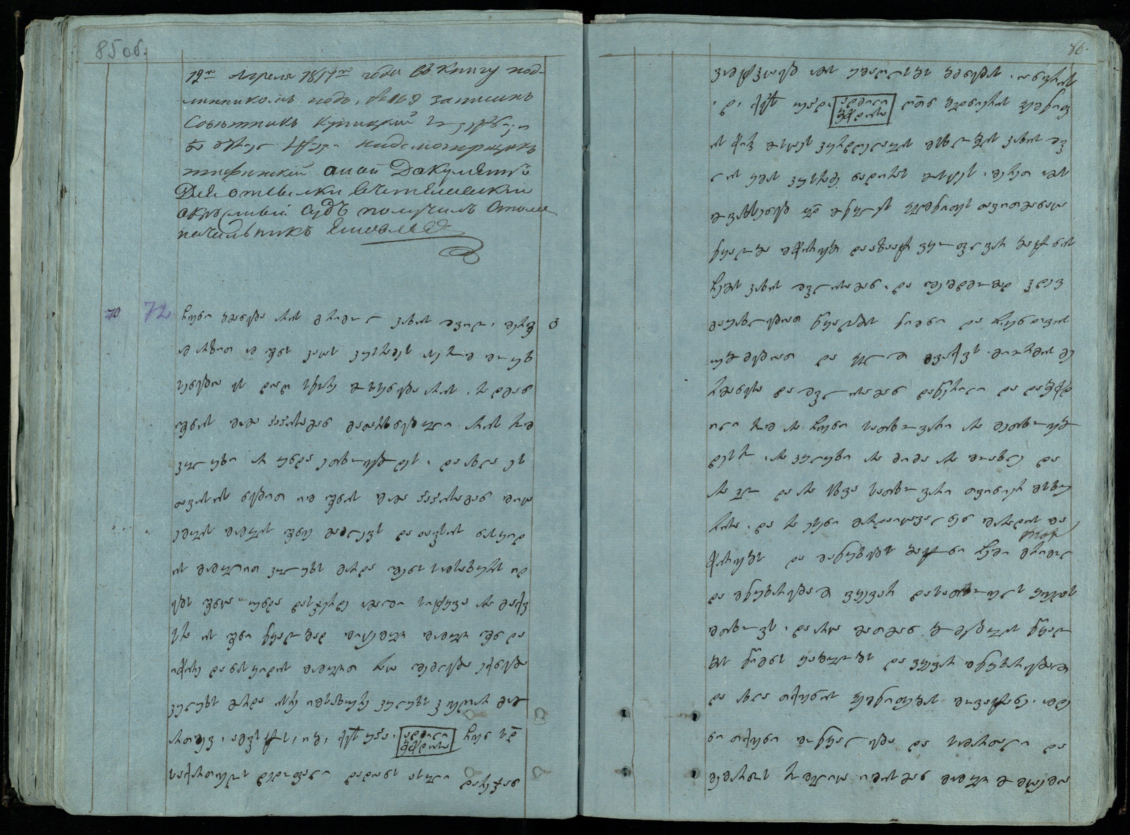 ცისფერი ქაღალდი, დაწერილი შავი მელნით