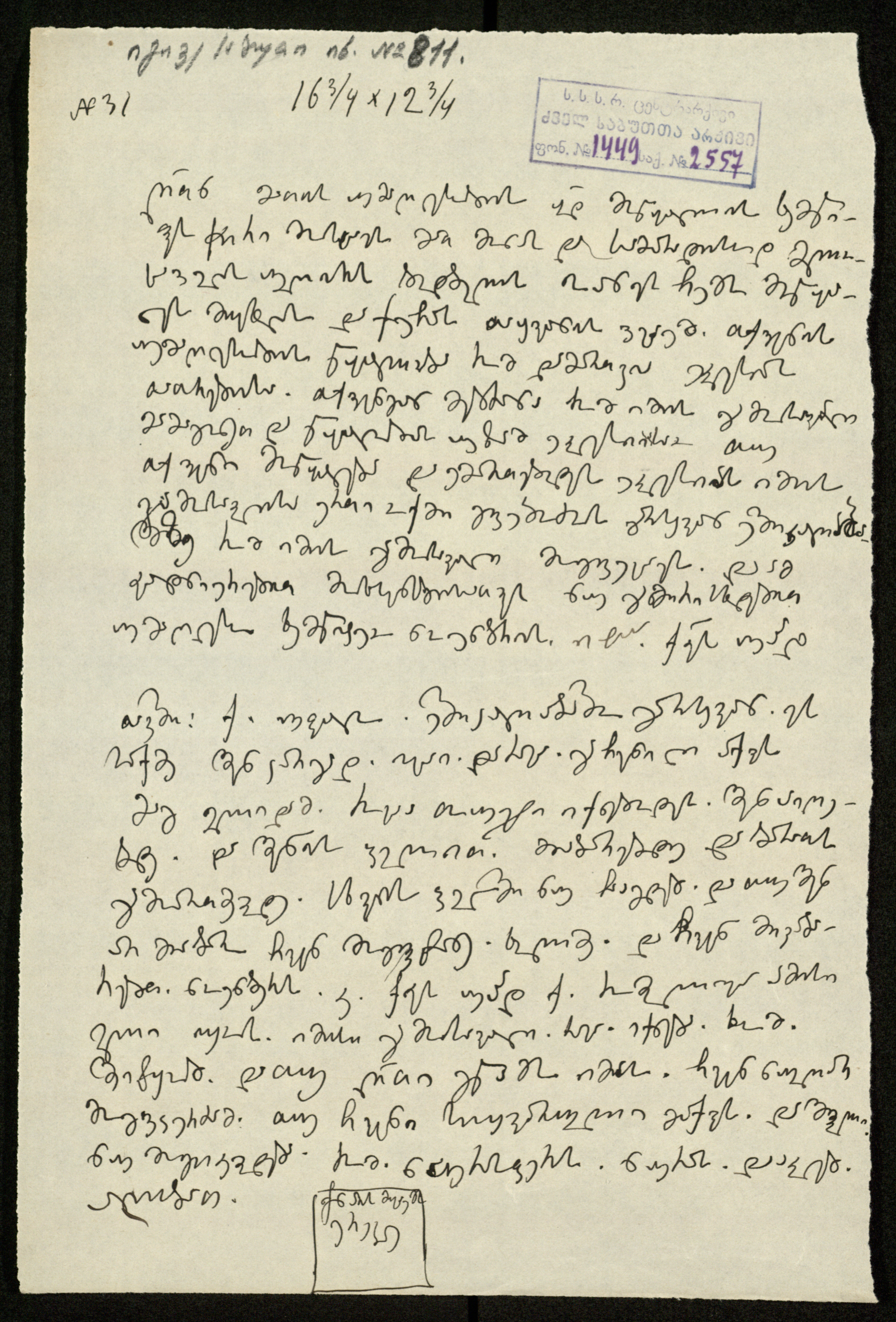 3. სარგის კაკაბაძეს მითითებული აქვს საბუთის ზომა: 163/4X 123/4 და ძველი საარქივო-სააღრიცხვო ნომერი: N31.