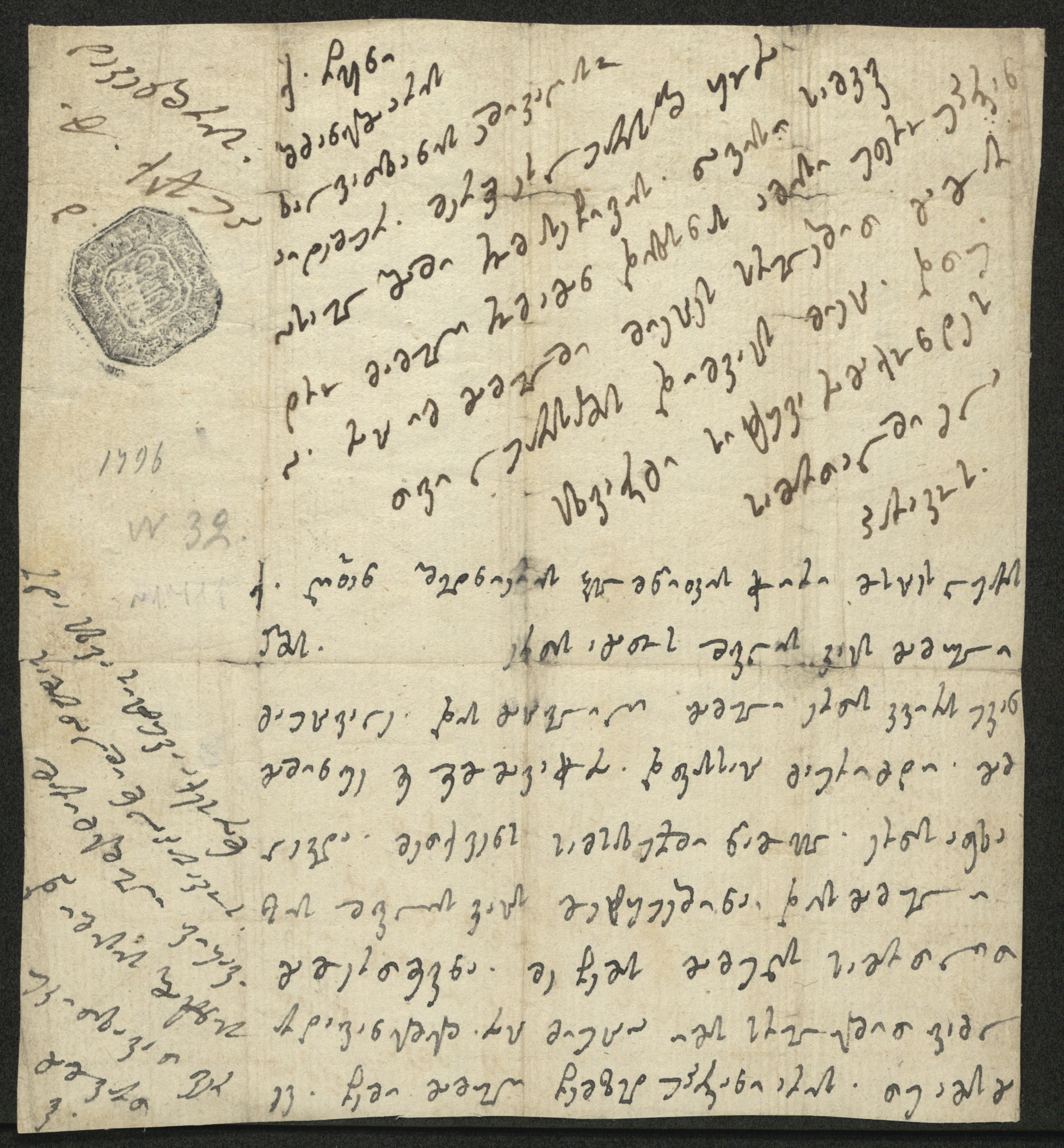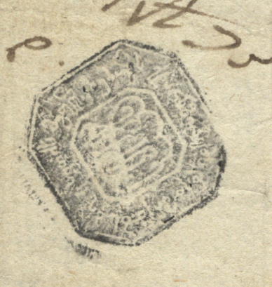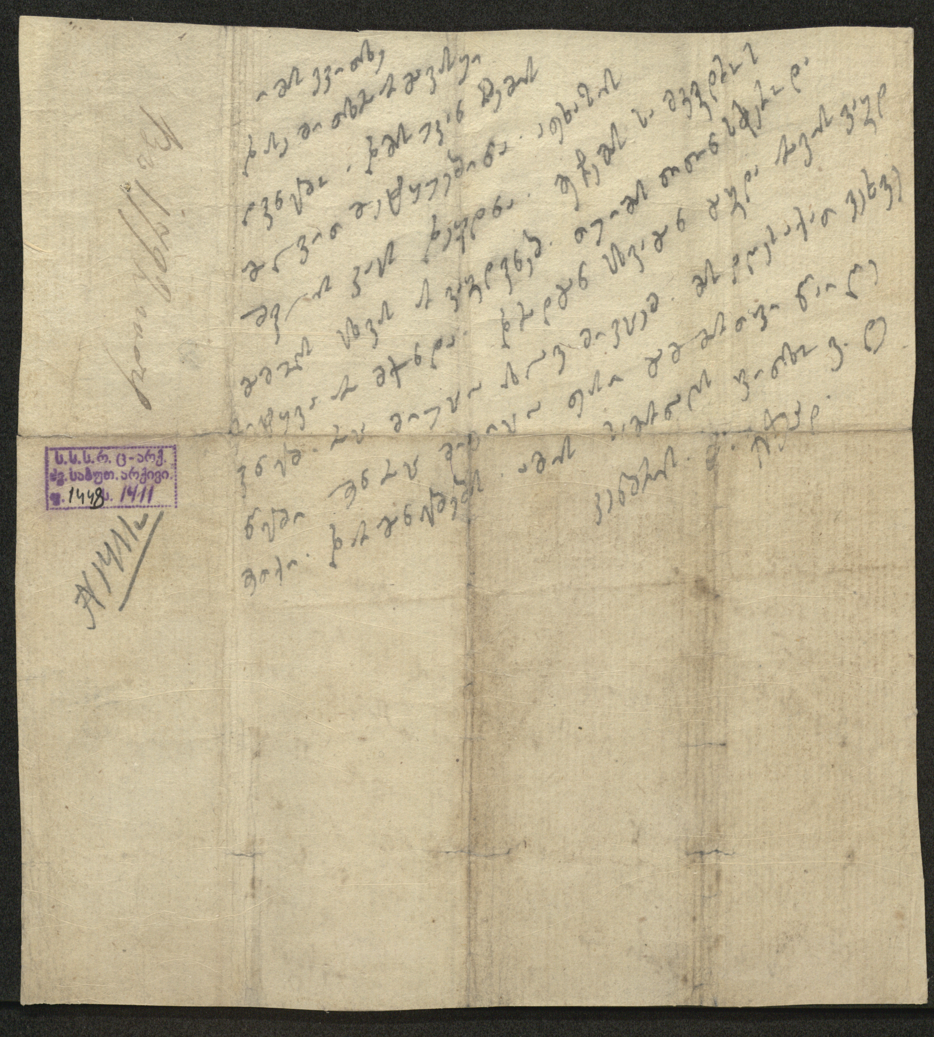 ნაცრისფერი ქაღალდი ჭვირნიშნით, შესრულებული შავი და ყავისფერი მელნით