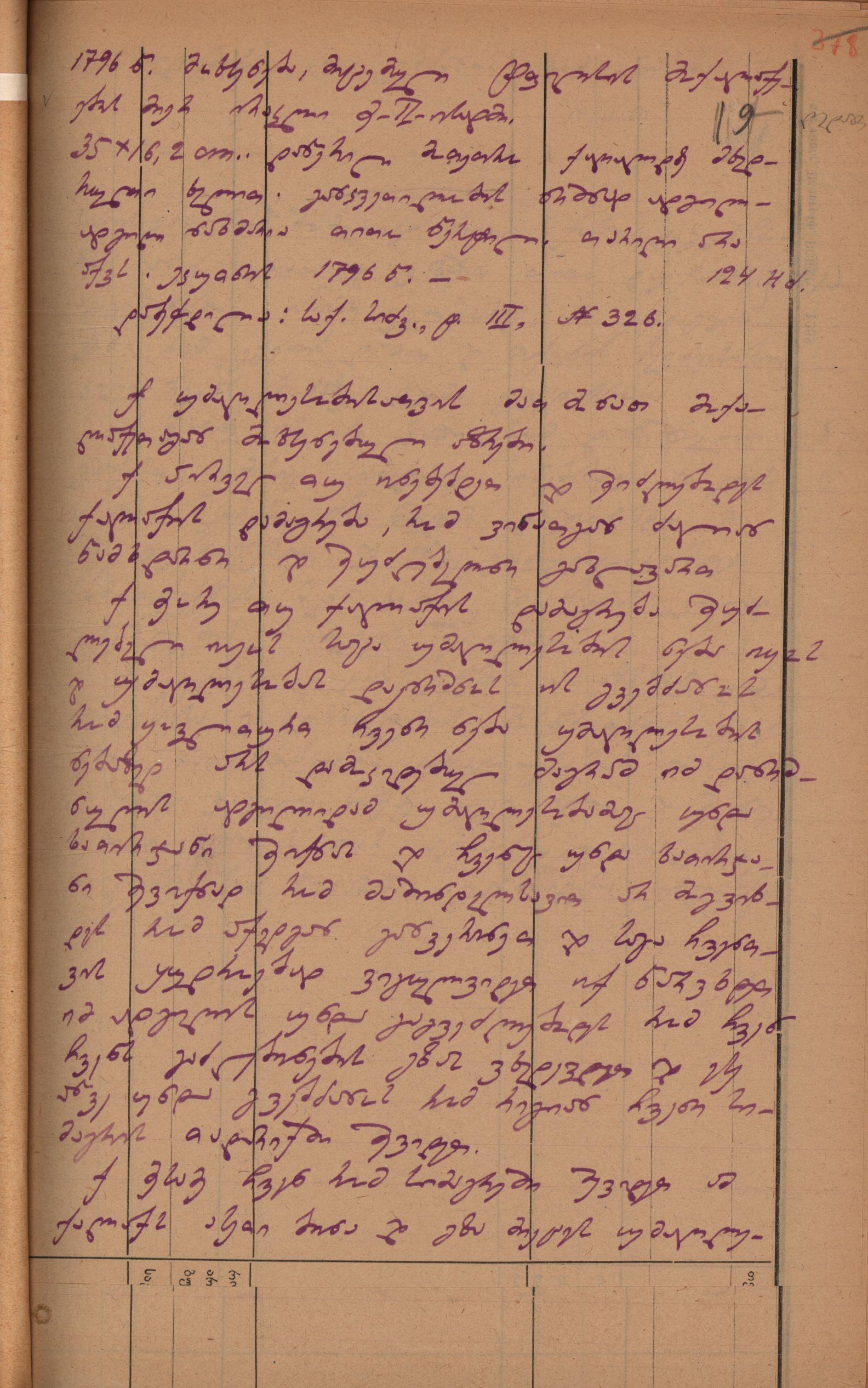 2. დედნის აღწერა გიორგი ბოჭორიძის მიერ: ,,დედანი, 35X16,2, დაწერილი მოთეთრო ქაღალდზე მხედრული ხელით, განკვეთილობის ნიშნად ადგილ-ადგილ ნახმარია თითო წერტილი".