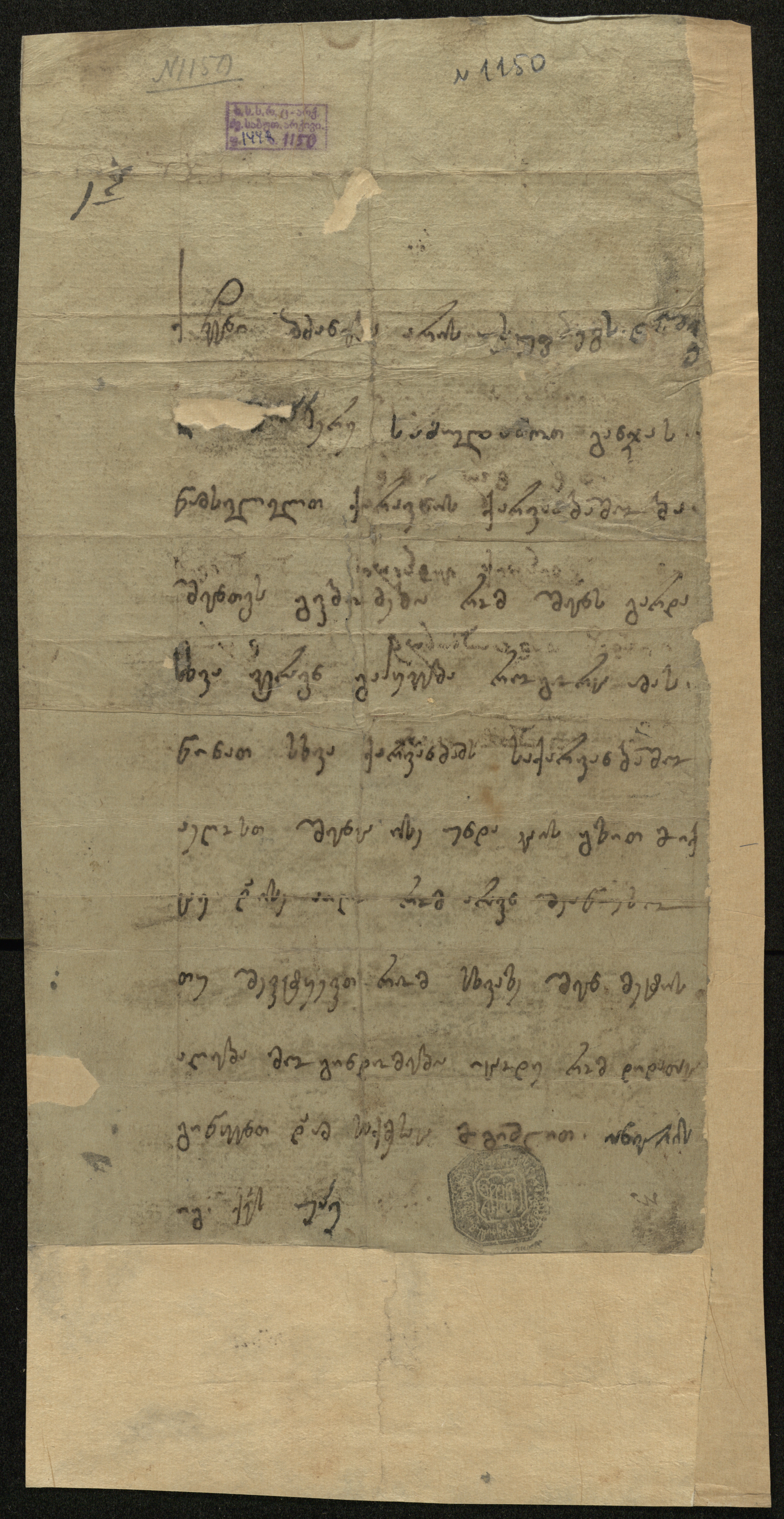 ჭვირნიშნიანი მწვანე ქაღალდი, შესრულებული შავი მელნით