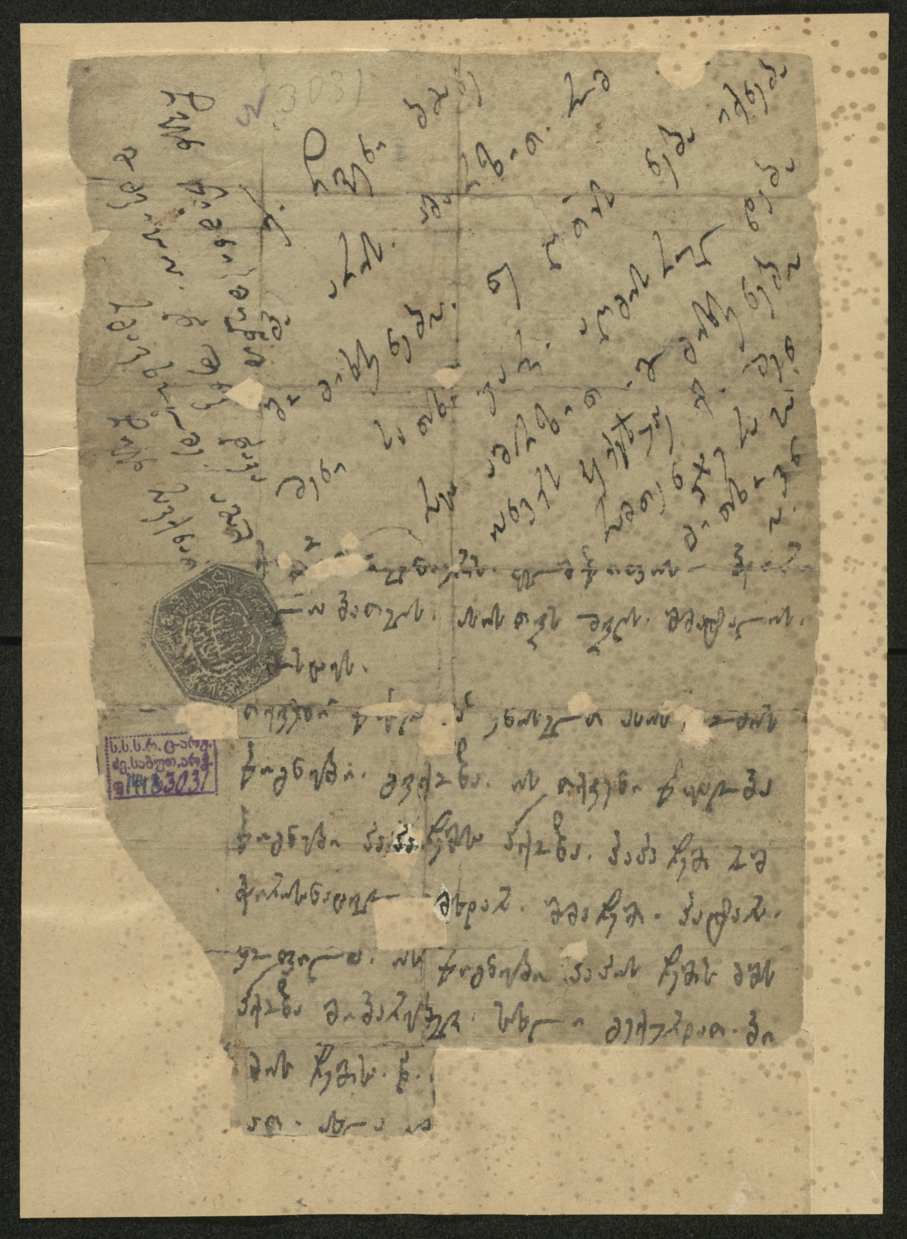 ჭვირნიშნიანი მწვანე ქაღალდი, შესრულებული შავი მელნით