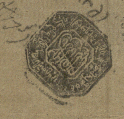 ჭვირნიშნიანი ნაცრისფერი ქაღალდი, შესრულებული შავი მელნით